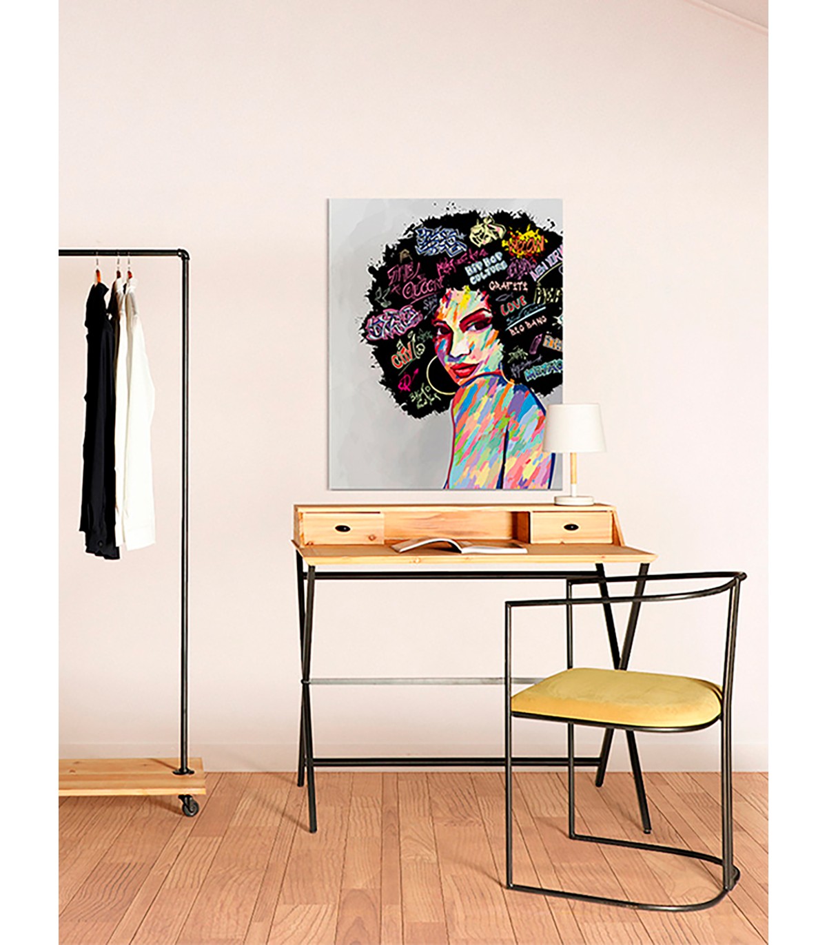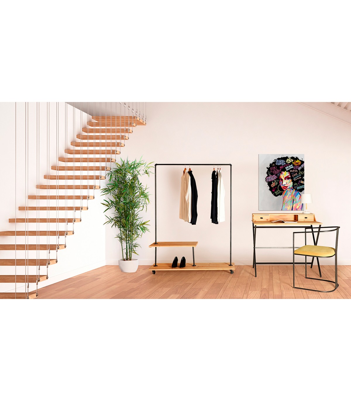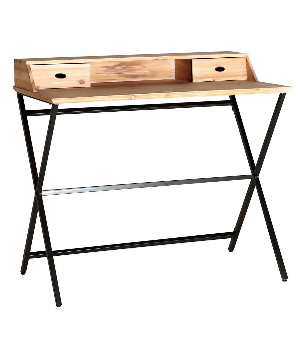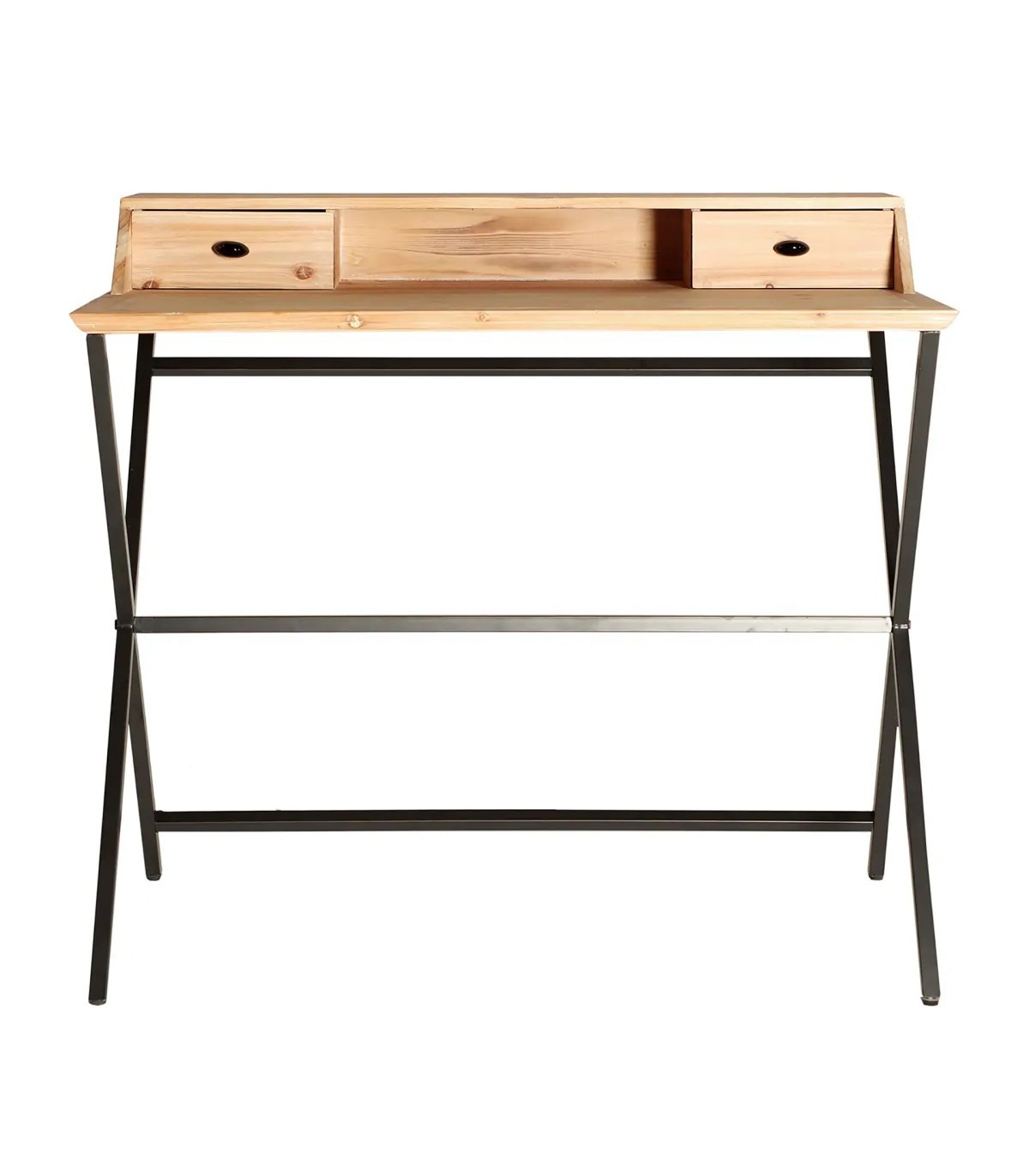 Escritorio gayles, en color negro/natural, de estilo industrial. Fabricado en hierro, combinado con madera de abeto. Producto desmontable.