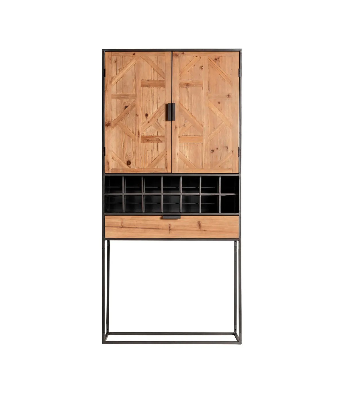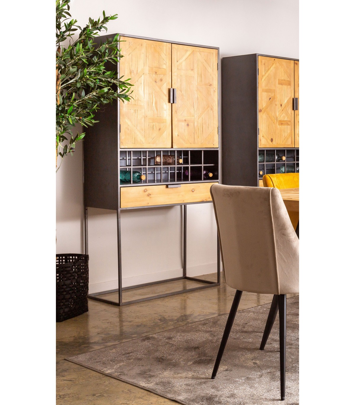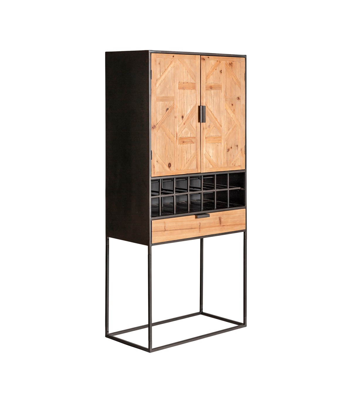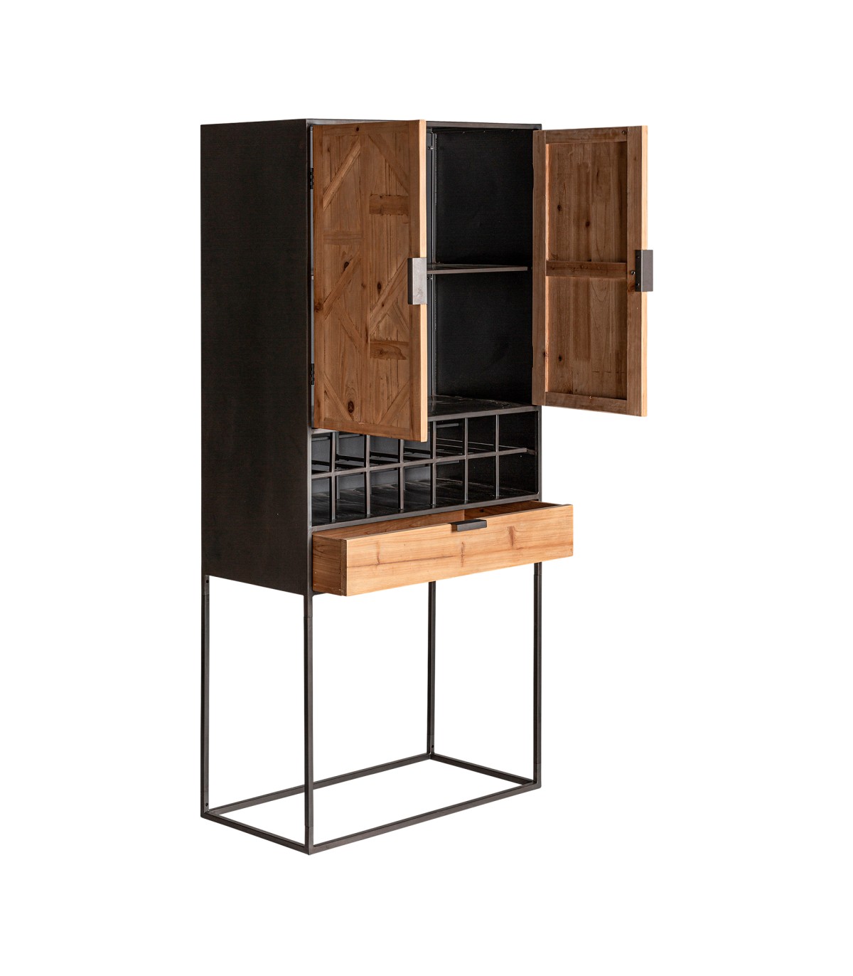 Armario longford, en color gris/natural, de estilo industrial. Fabricado en madera de abeto, combinado con hierro y madera dm. Producto desmontable.