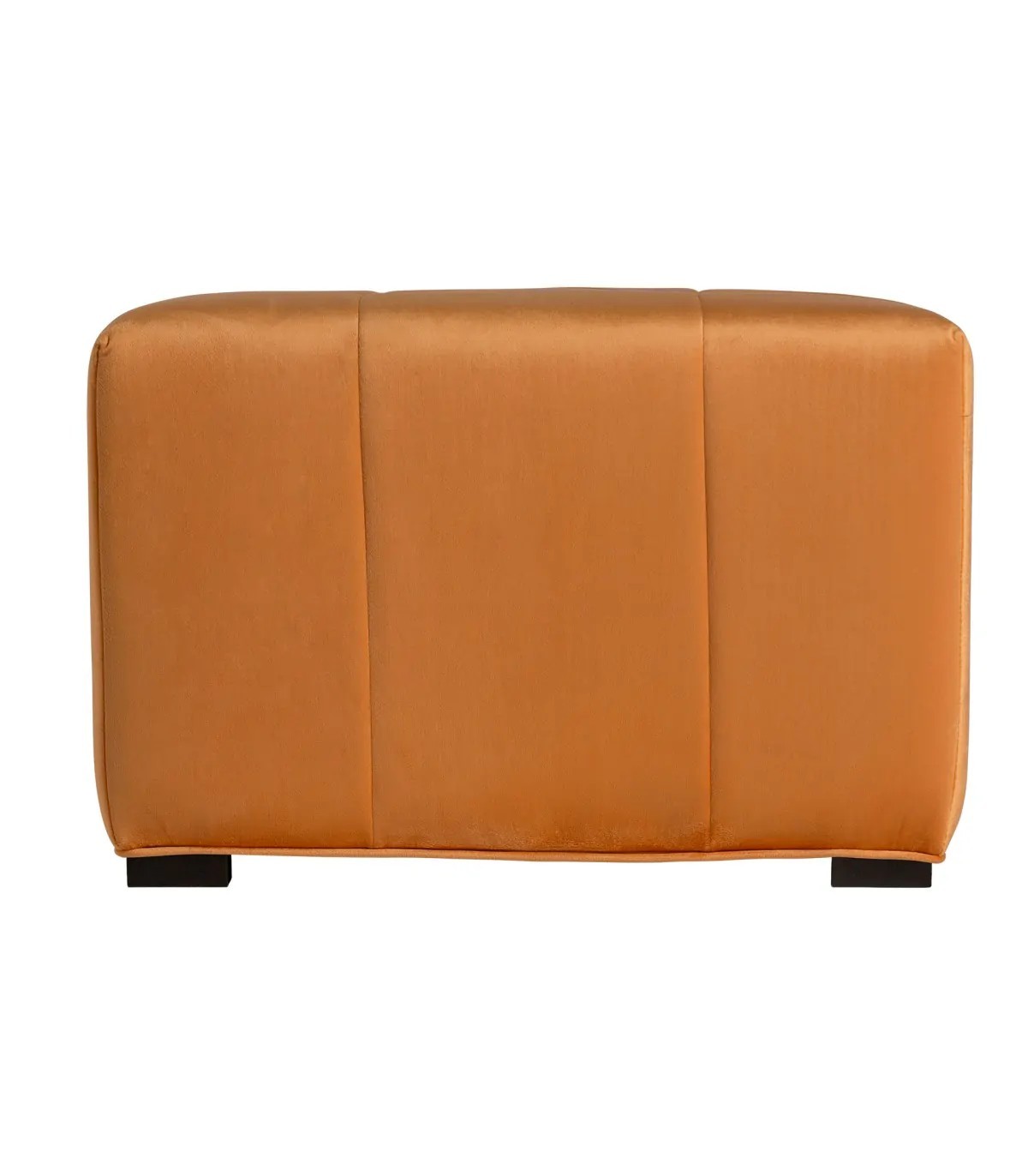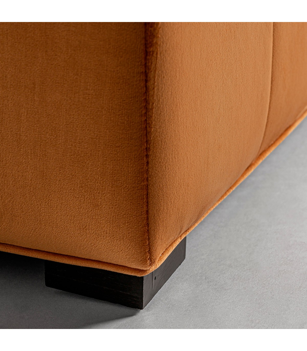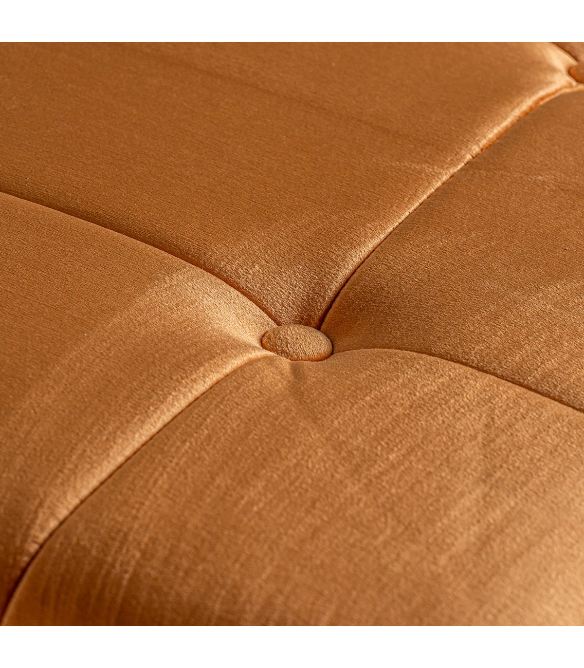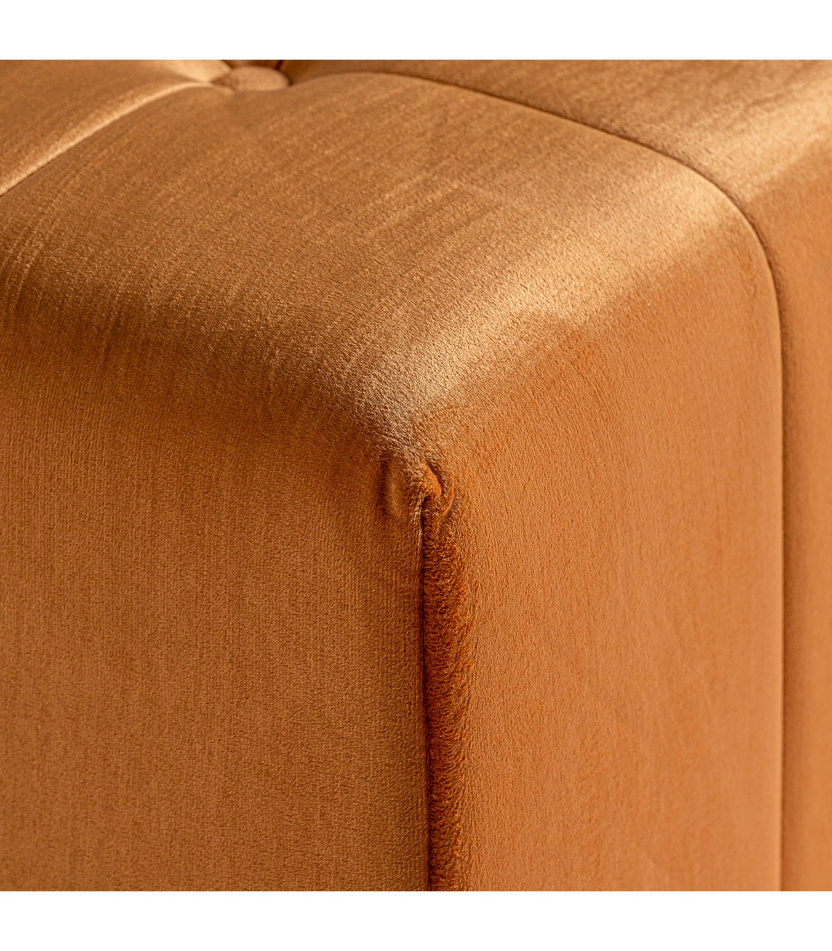 Reposapiés geloux, en color ocre, de estilo colonial. Fabricado en poliéster, combinado con madera de pino y espuma.