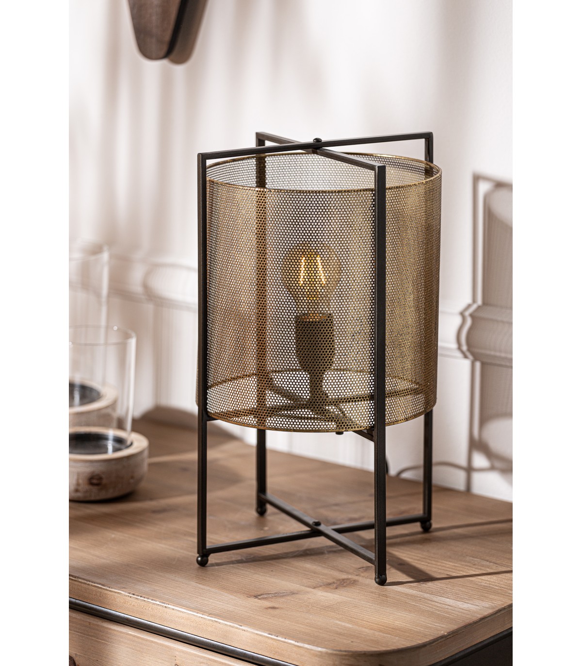 Lámpara de sobremesa haimie, en color negro/oro viejo, de estilo art deco. Fabricado en hierro.