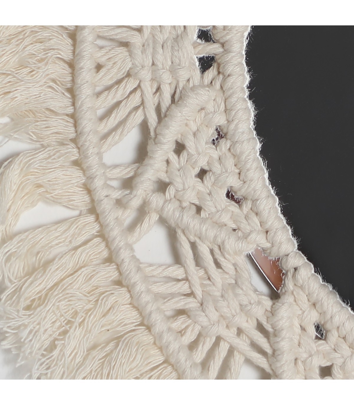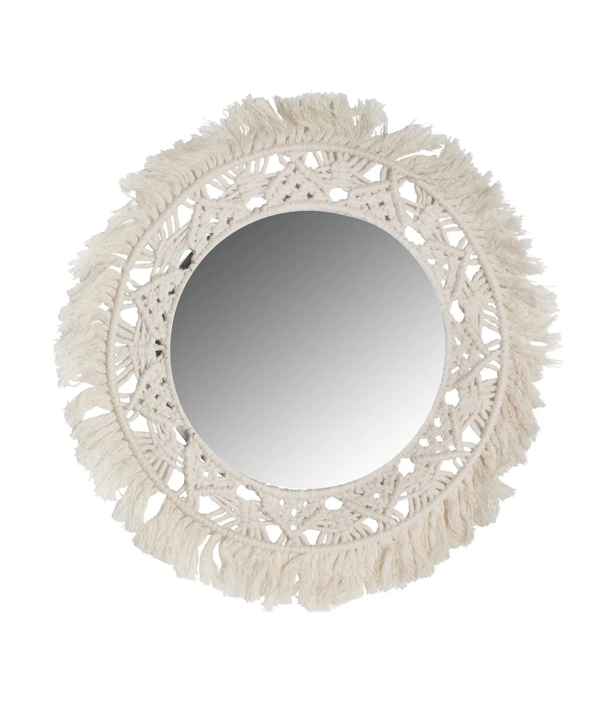 Espejo alayor, en color blanco, de estilo shabby chic. Fabricado en cuerda, combinado con plástico. Espejo plastico.