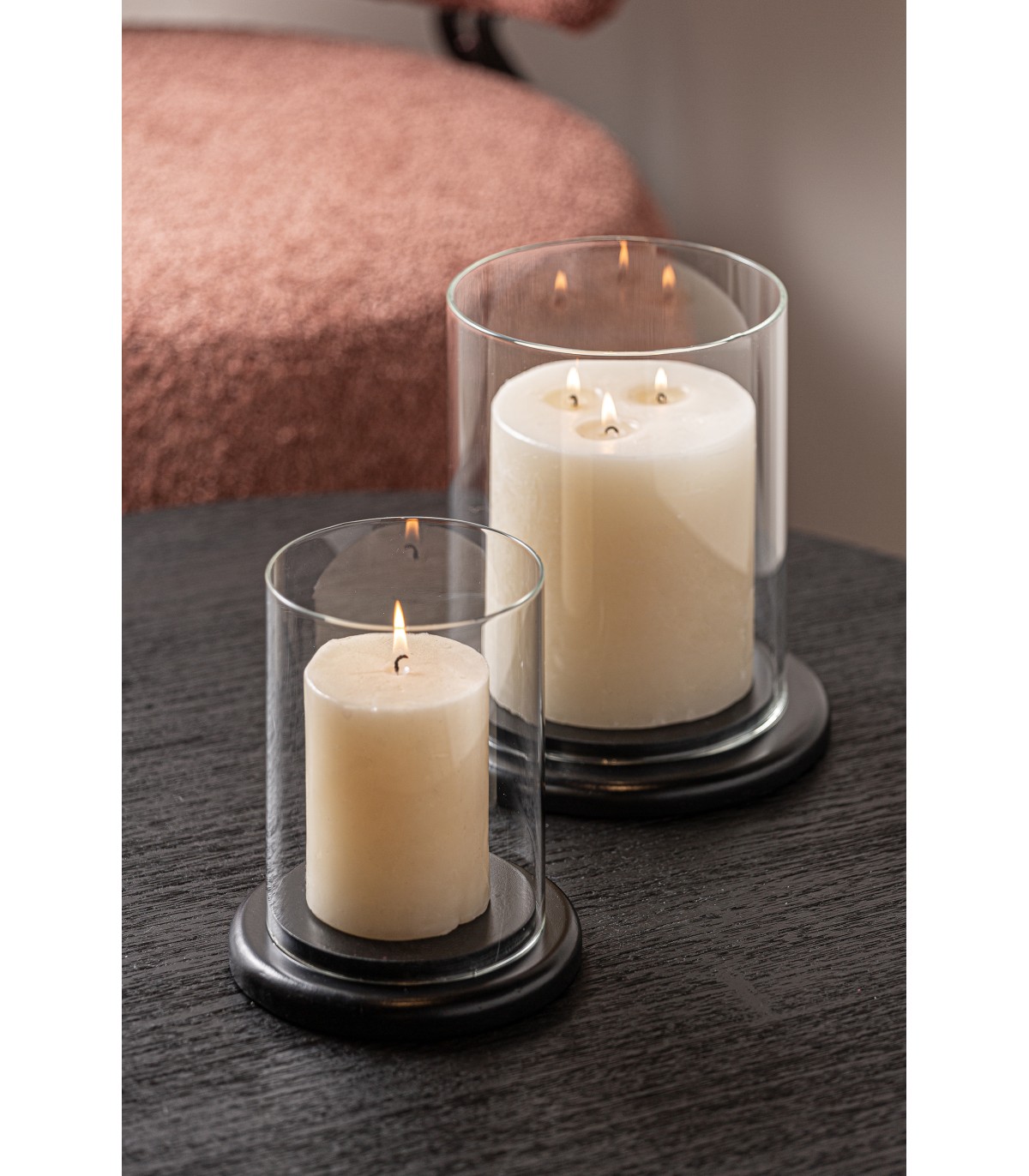 Portavela j/2 apchat, en color negro, de estilo contemporáneo. Fabricado en madera dm, combinado con vidrio. Producto desmontable.