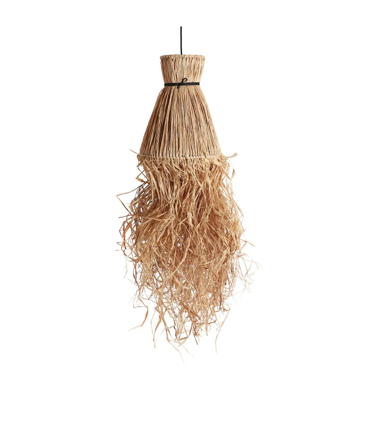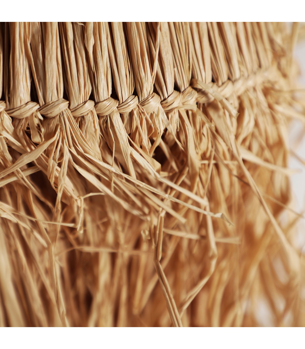 Lámpara de techo kasses, en color natural, de estilo boho. Fabricado en fibra natural, combinado con rafia y hierro.