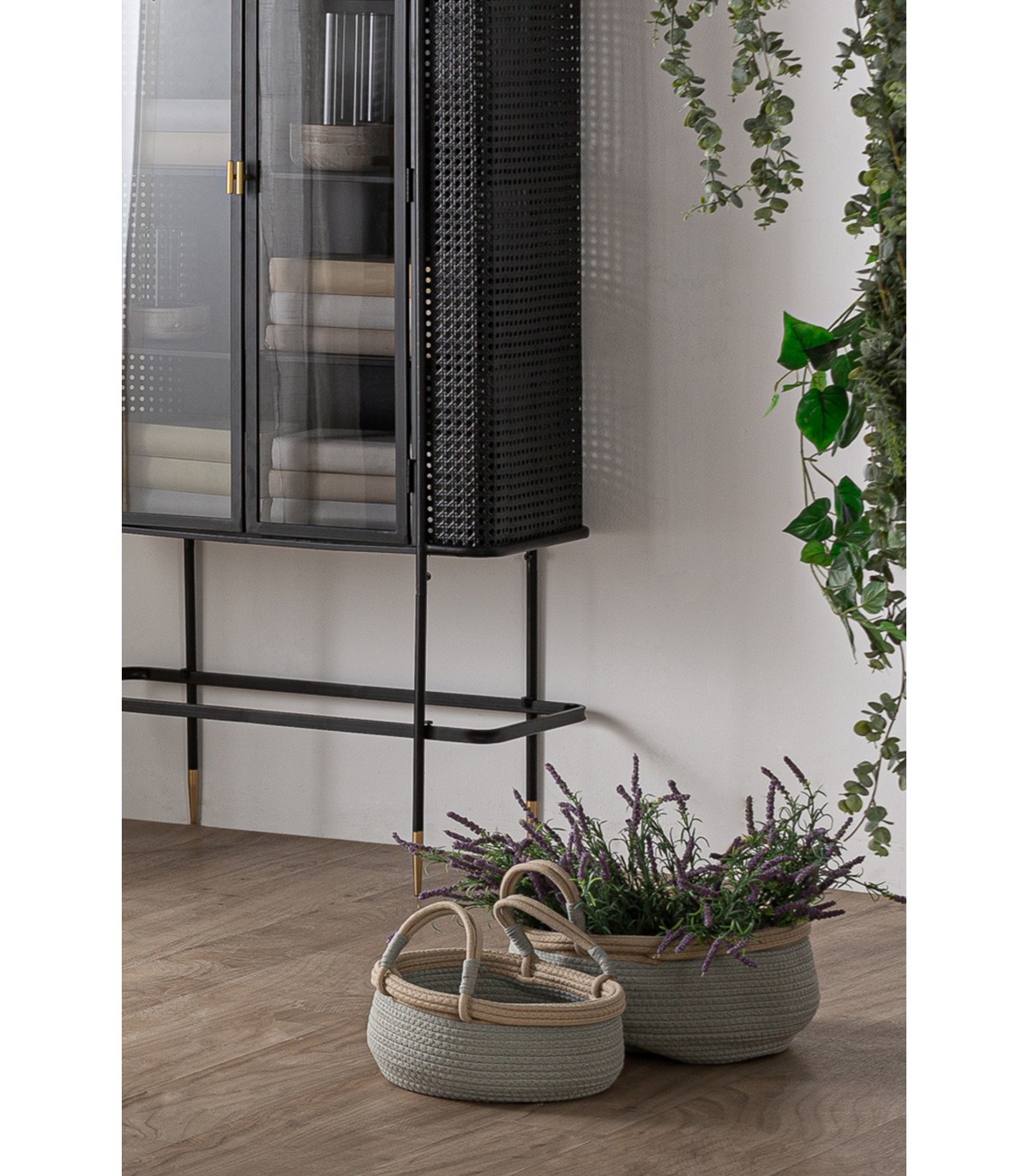 Cesto j/2, en color gris/natural, de estilo shabby chic. Fabricado en algodón.