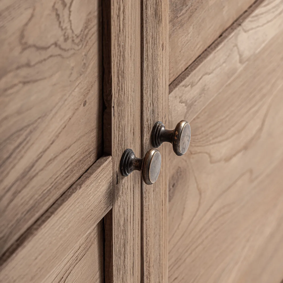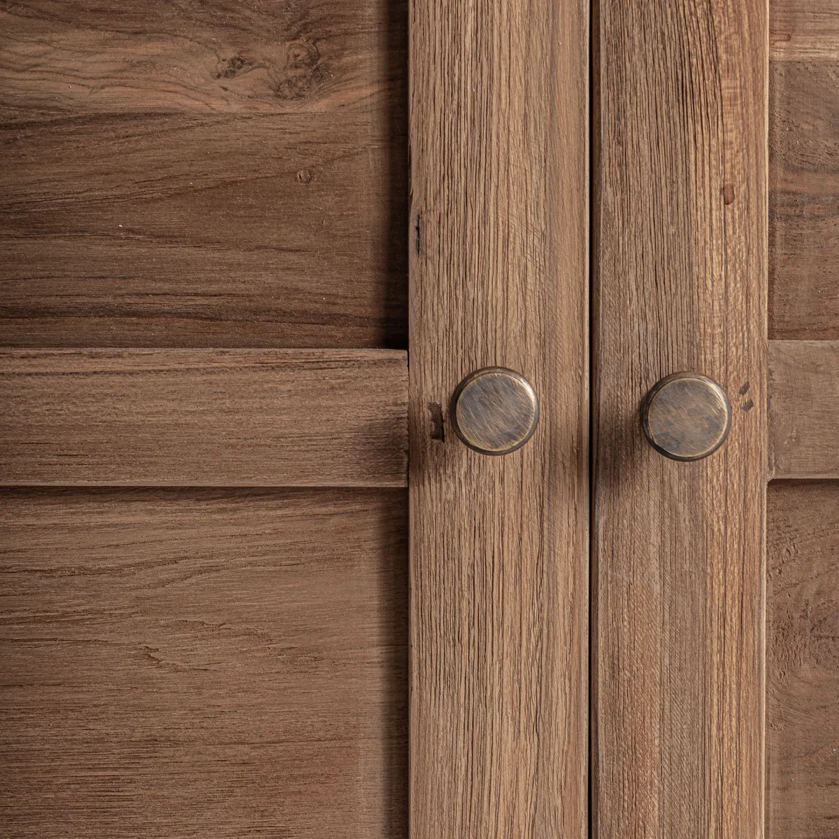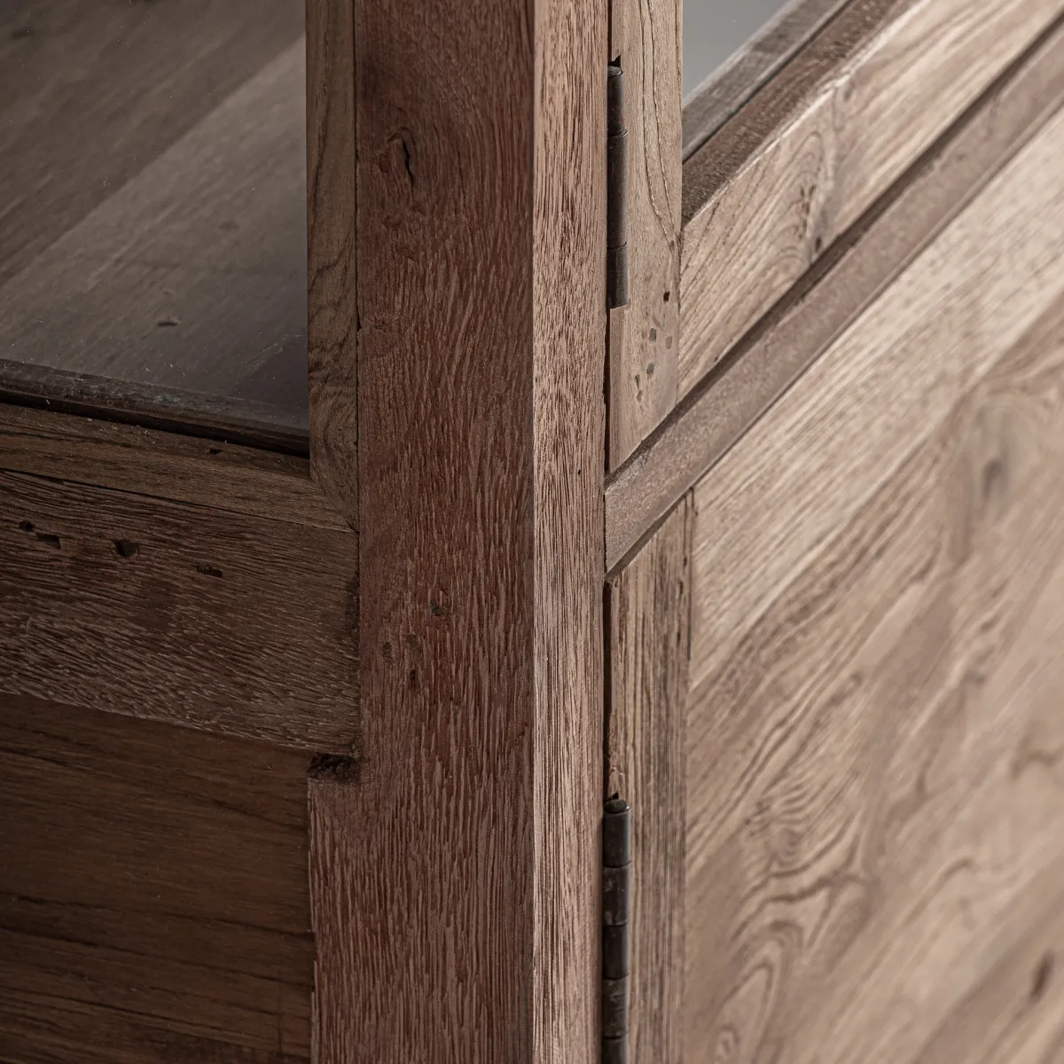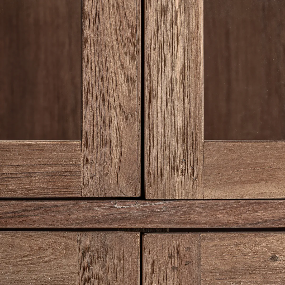 Vitrina fabricado en madera recuperada en color marrón.