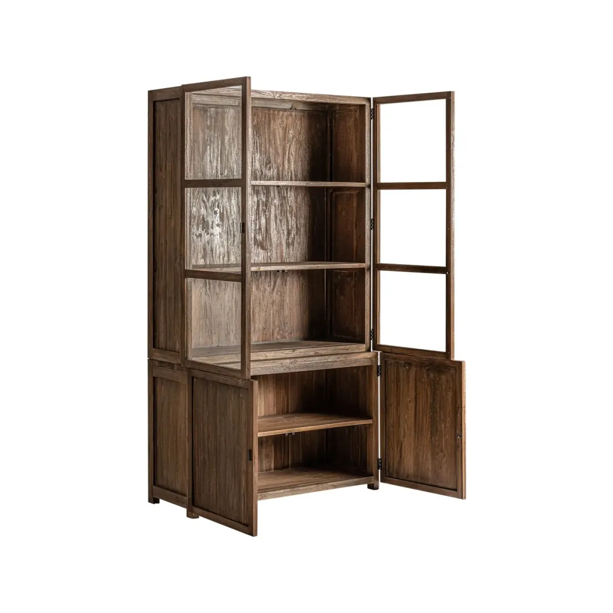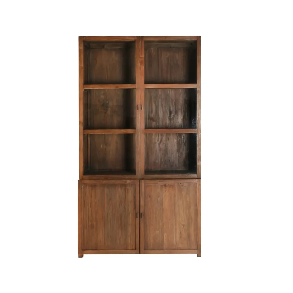 Vitrina nysted, en color natural, de estilo colonial. Fabricado en madera de teka reciclada.