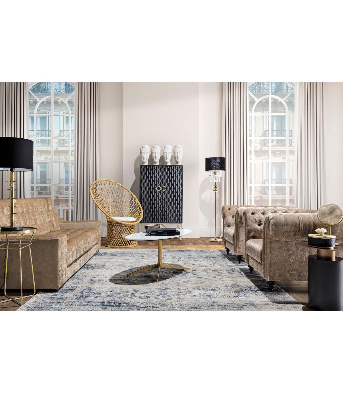 Alfombra rectangular aurora de estilo clásico fabricado en viscosa en color beige.