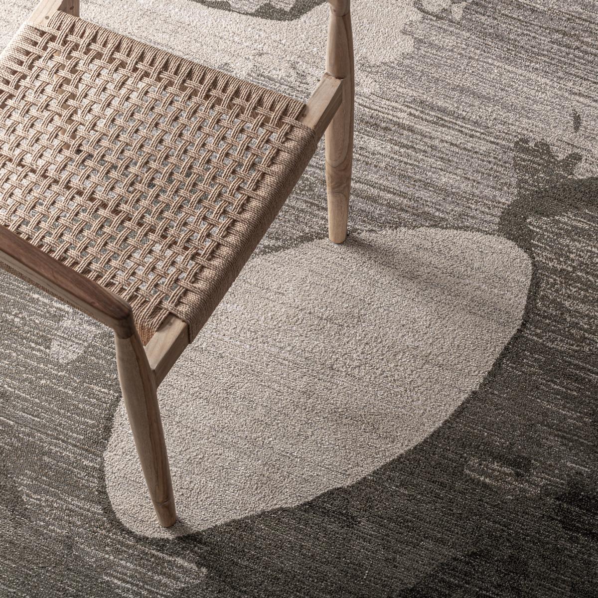Alfombra Gabrielle de estilo contemporáneo, fabricado en poliéster en color beige, combinado con poliéster en color tonos en verde.