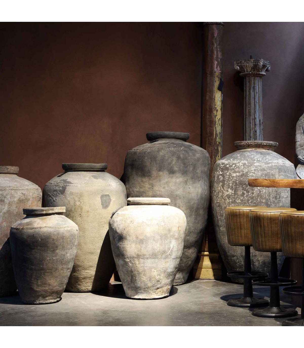 Tinaja geslau en color marrón envejecido de estilo étnico. Fabricado en terracota.