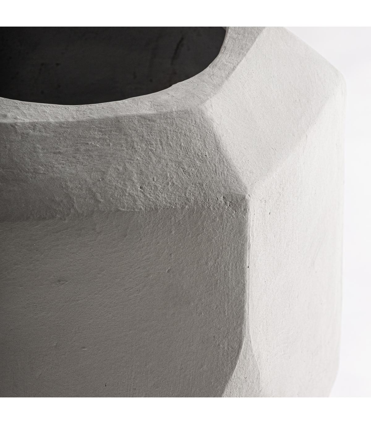 Tinaja fabricado en cemento en color gris combinado con fibra de vidrio.