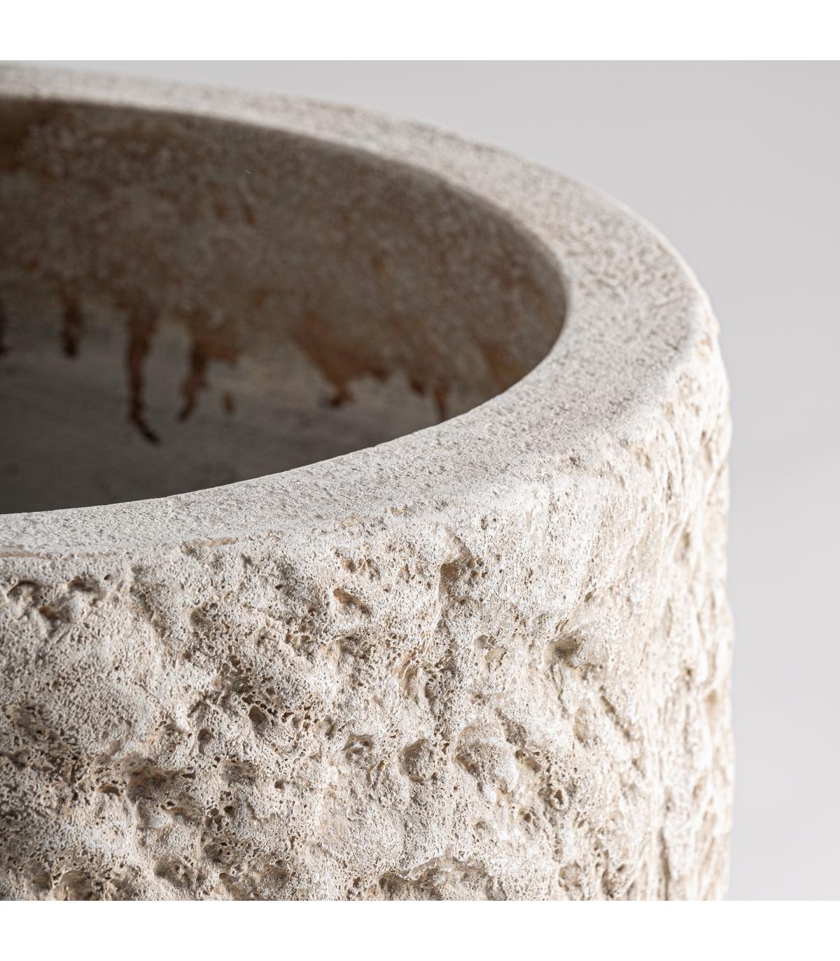 Macetero Brod de estilo contemporáneo fabricado en cemento en color blanco roto combinado con fibra de vidrio.