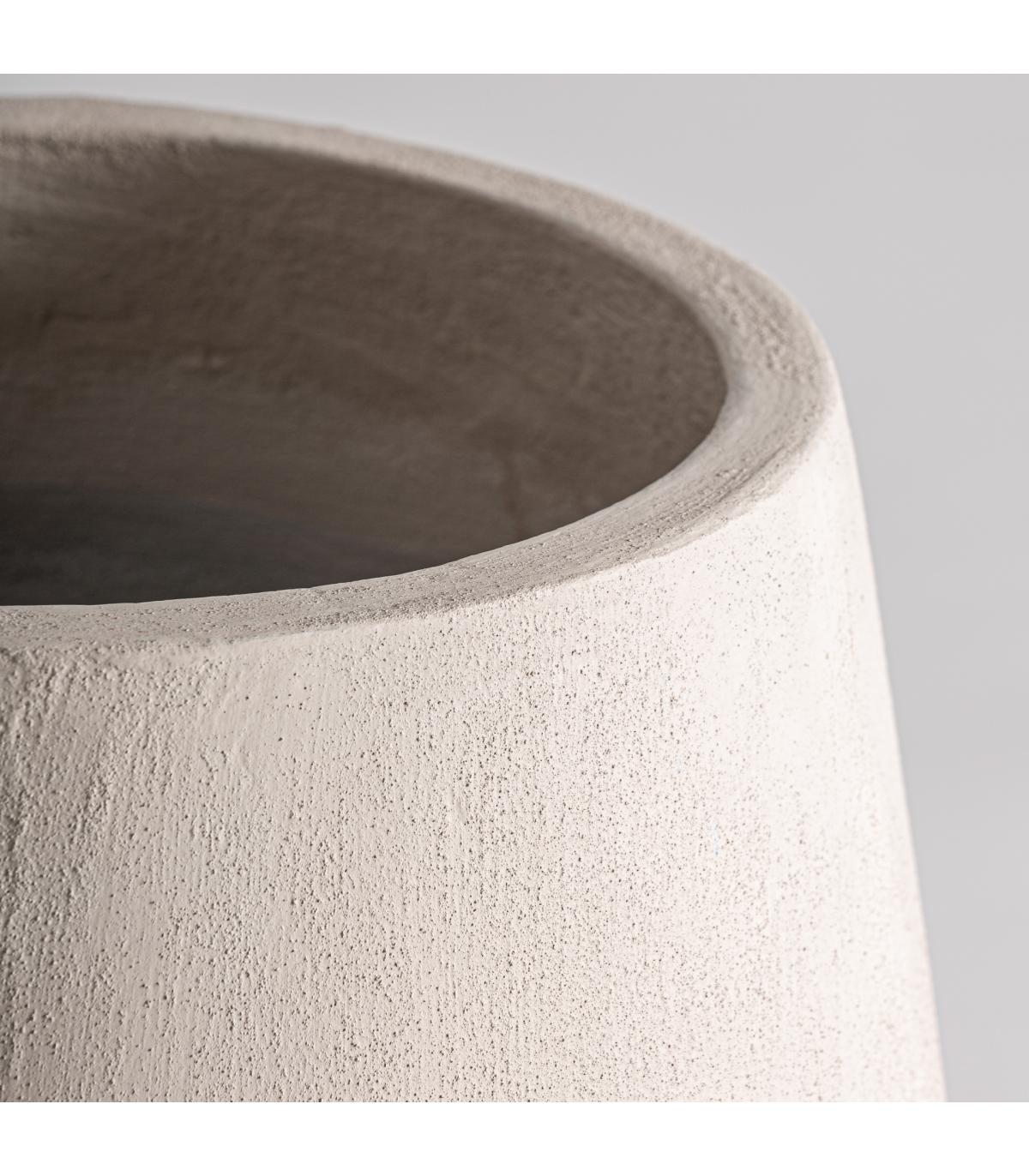 Tinaja Stevie de estilo contemporáneo fabricado en cemento en color beige combinado con fibra de vidrio.