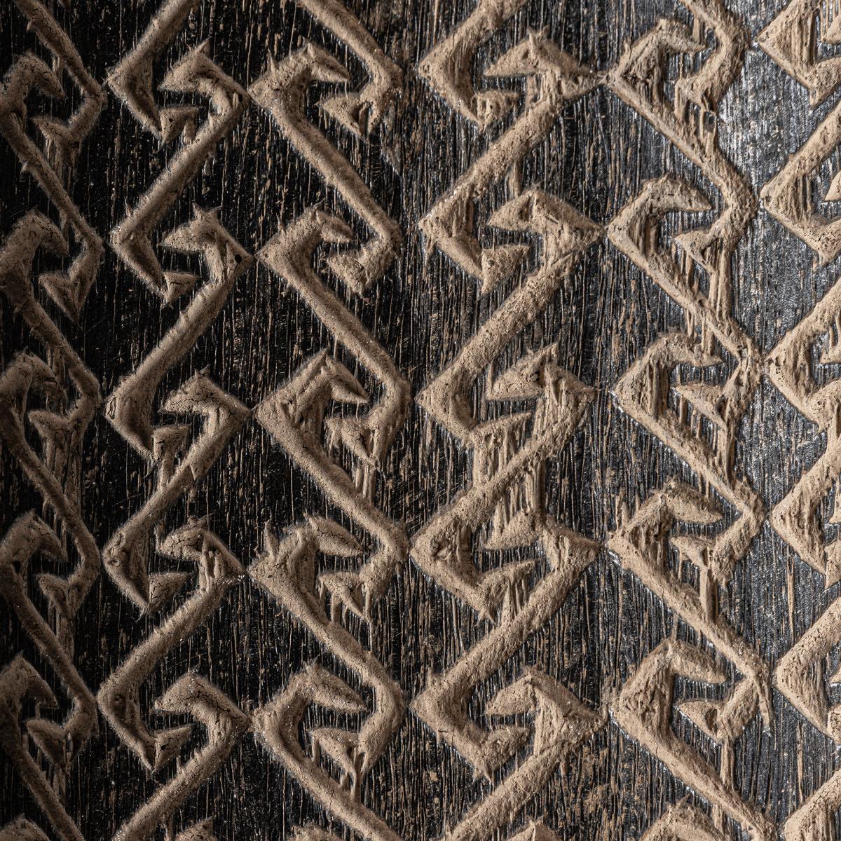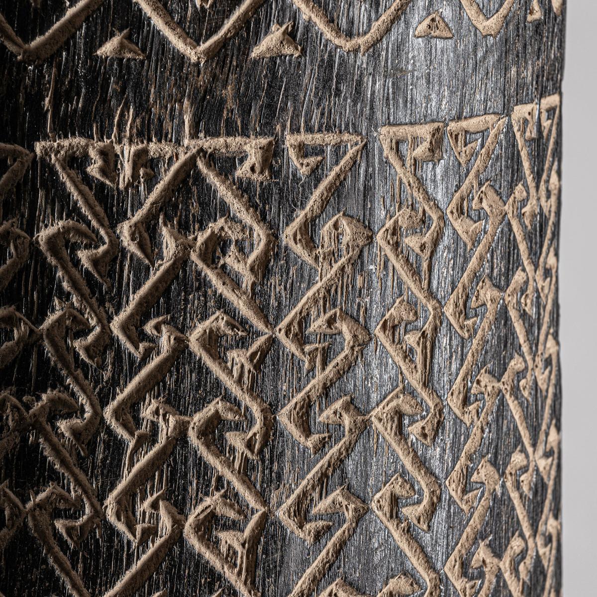 Jarrón nantua de estilo contemporáneo fabricado en madera palma en color tonos en marrón con acabado tallado.