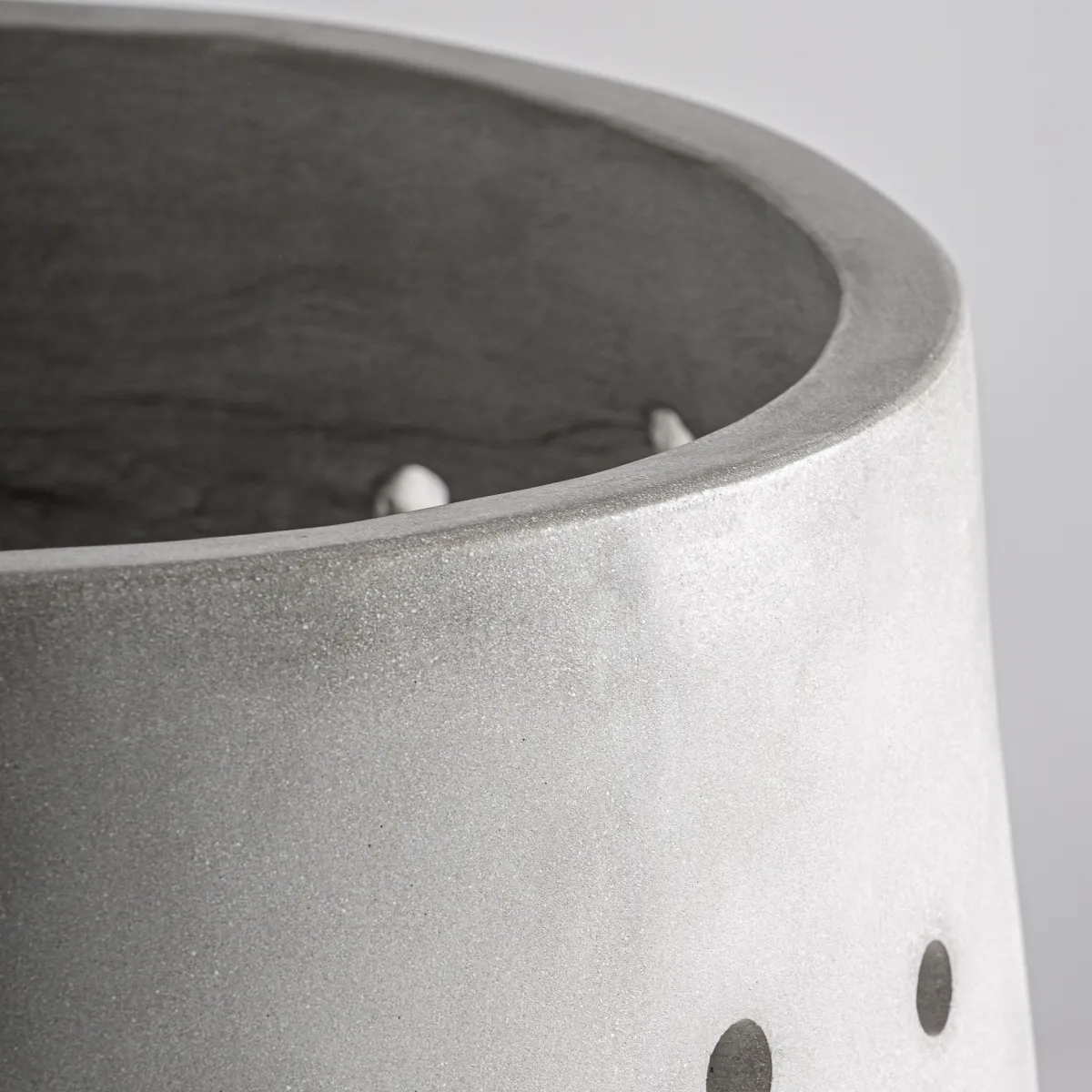 Macetero j 3 Jacquard de estilo contemporáneo fabricado en cemento en color blanco roto. Producto apilable.