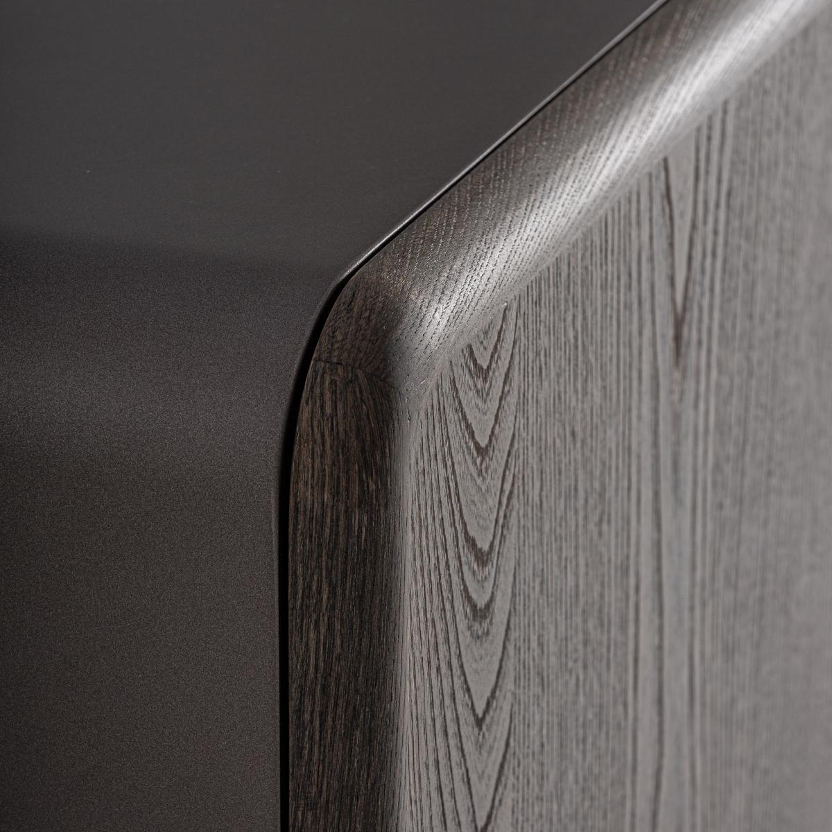 Aparador Pravia de estilo contemporáneo fabricado en madera dm en color marrón combinado con madera contrachapada en color marrón. Producto desmontable.
