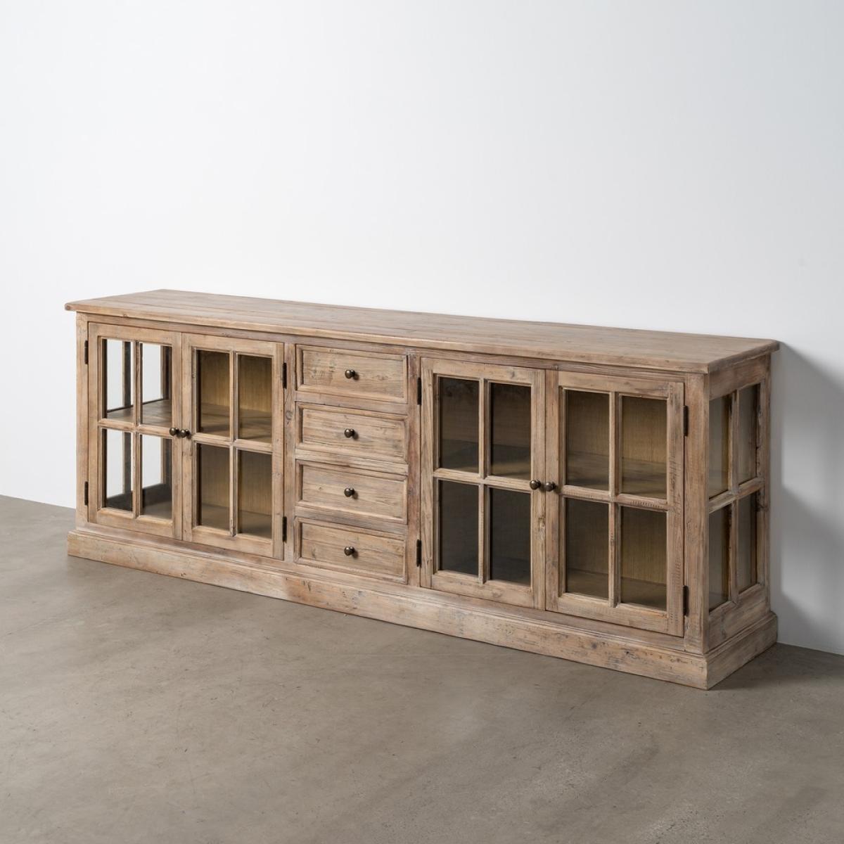APARADOR MADERA DE PINO SALÓN 220 X 45 X 80 CM Material: madera de pino reciclada, cristal. Cajones: 39,5x13,5cm. Puertas: 39x63,5cm.