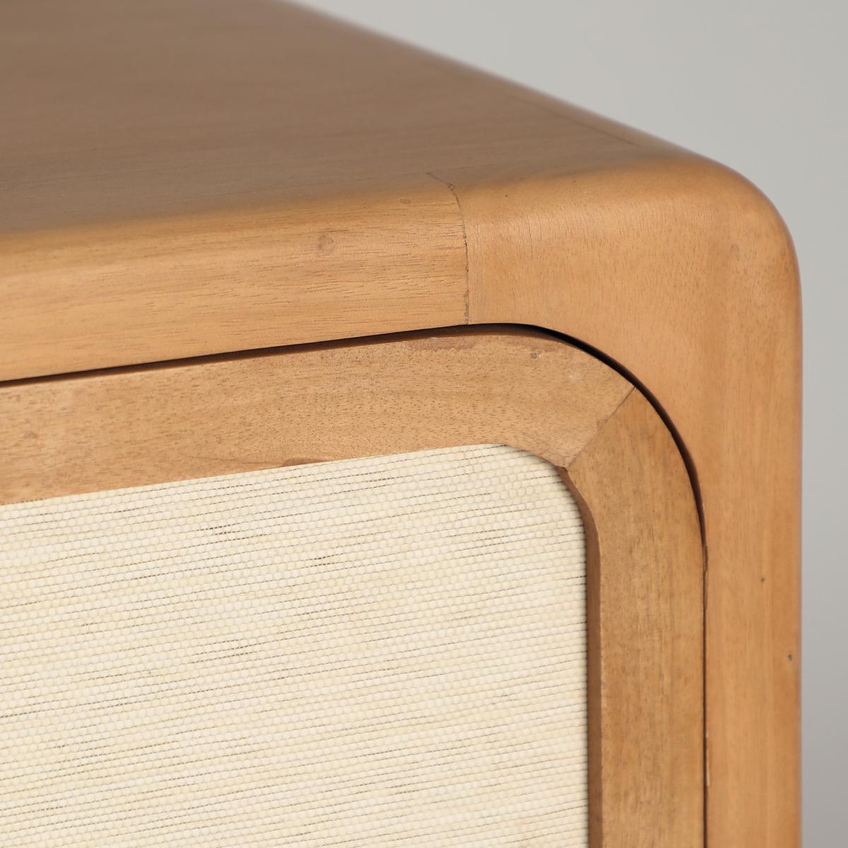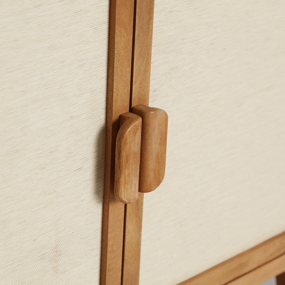 Aparador Lattes de estilo nórdico, fabricado en madera de mango en color marrón, combinado con bambú en color beige y madera dm en color marrón.