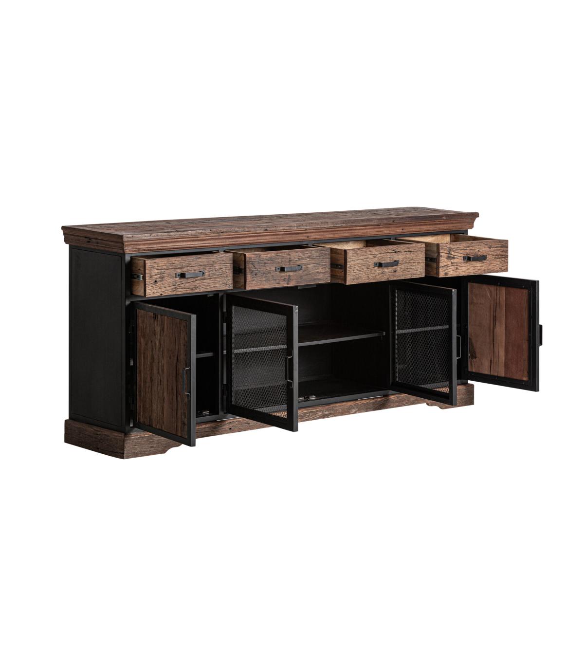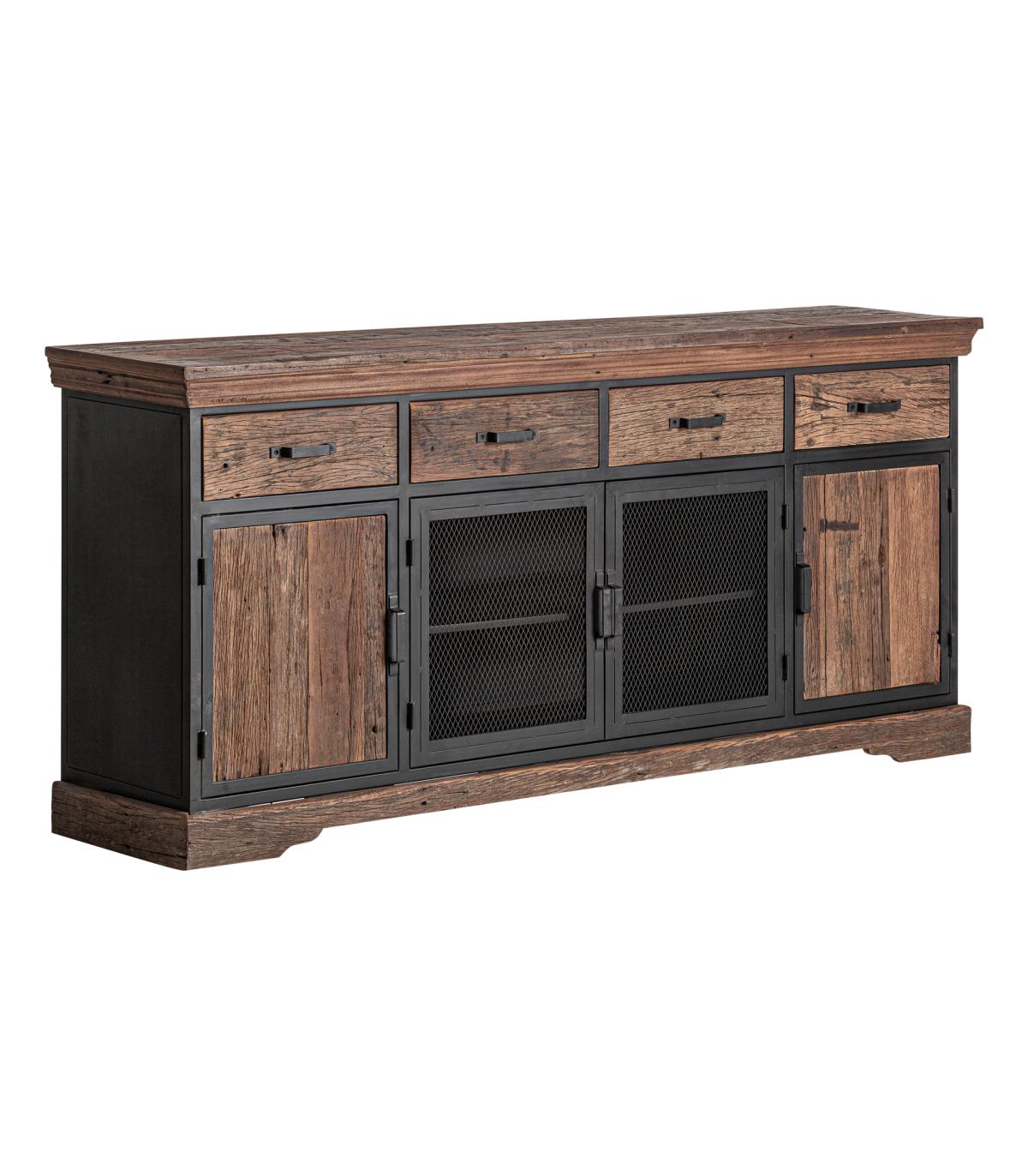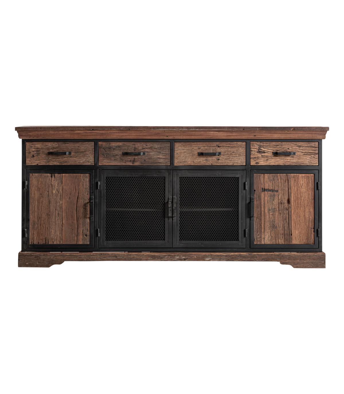 Aparador walding de estilo nórdico fabricado en hierro en color negro combinado con madera recuperada en color marrón.