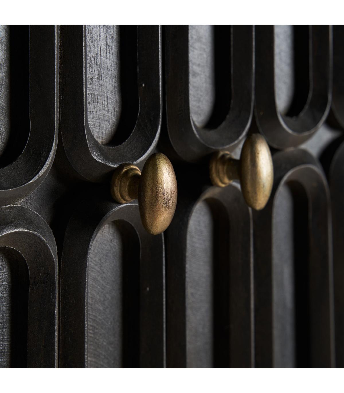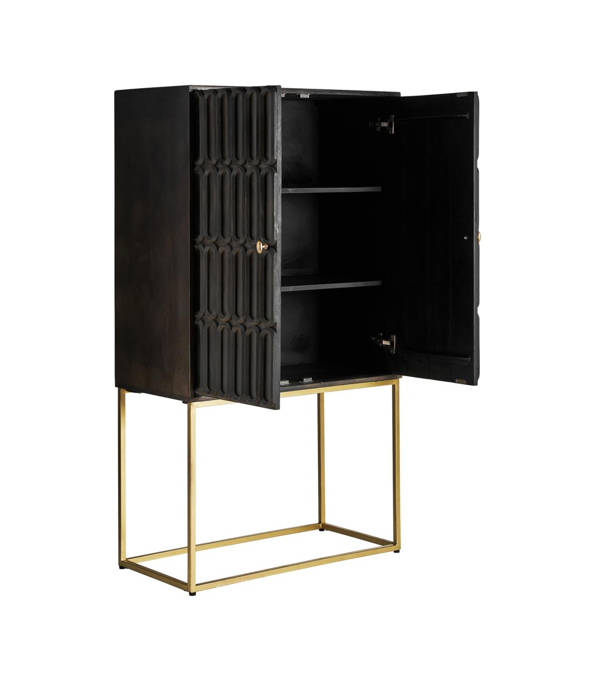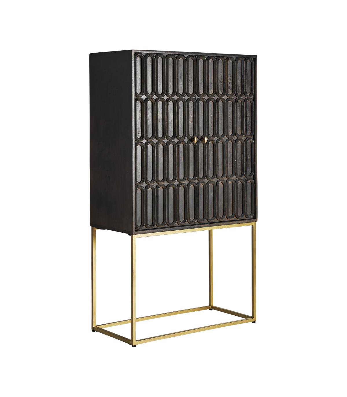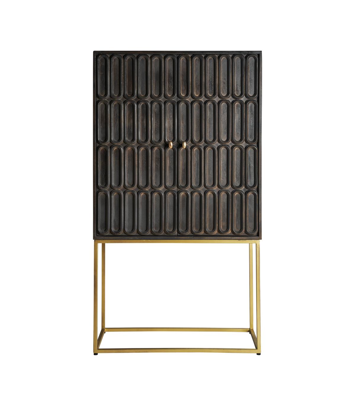 Armario Emly de estilo art deco fabricado en madera de mango en color marrón combinado con latón en color oro.