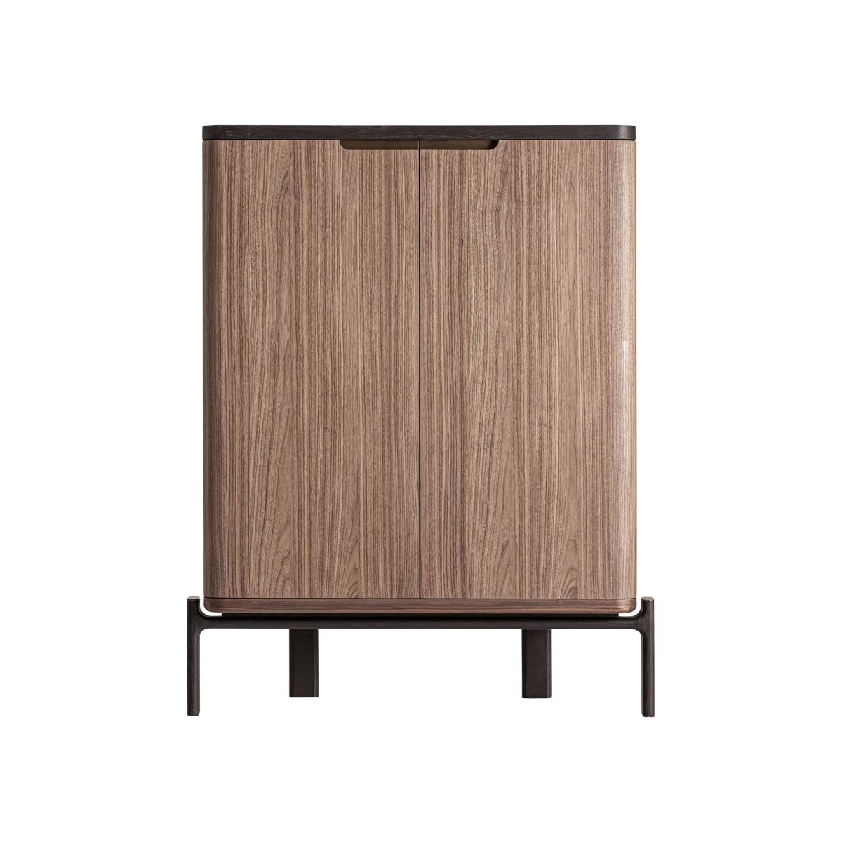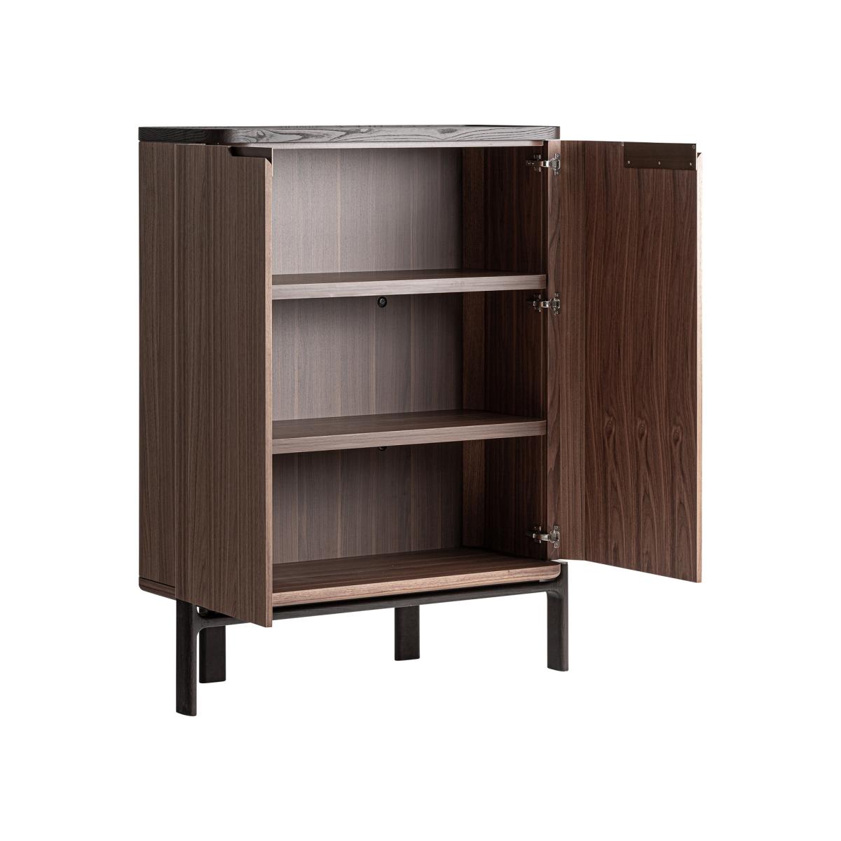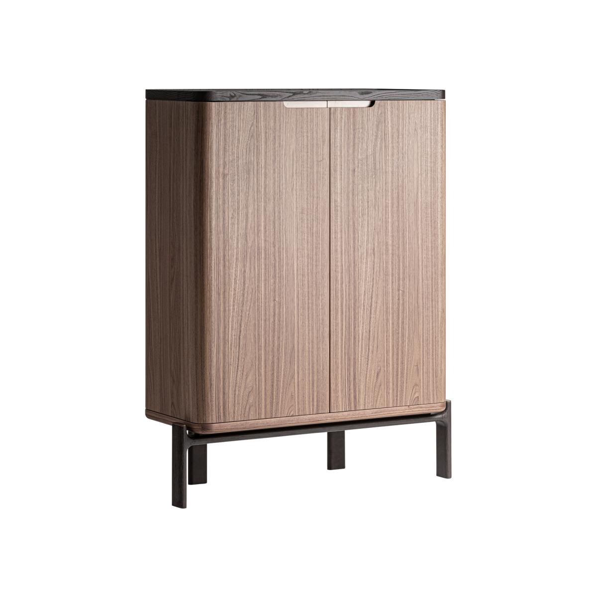 Armario, fabricado en madera dm en color marrón, combinado con madera nogal en color negro y cristal templado en color beige.