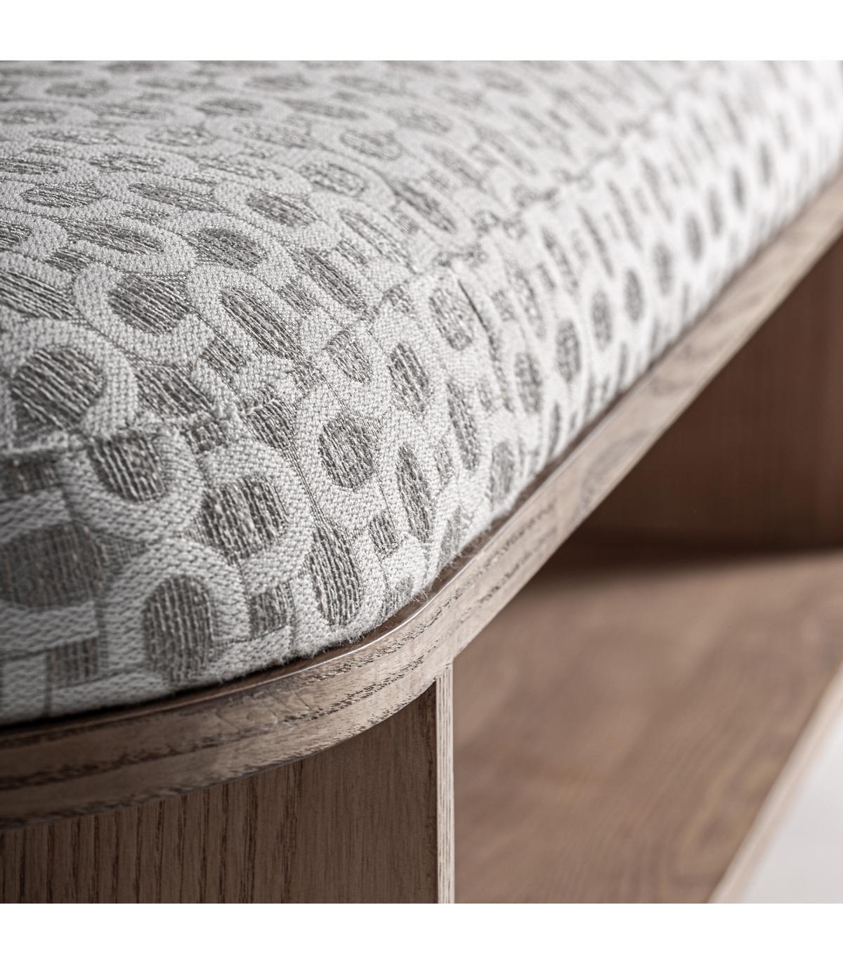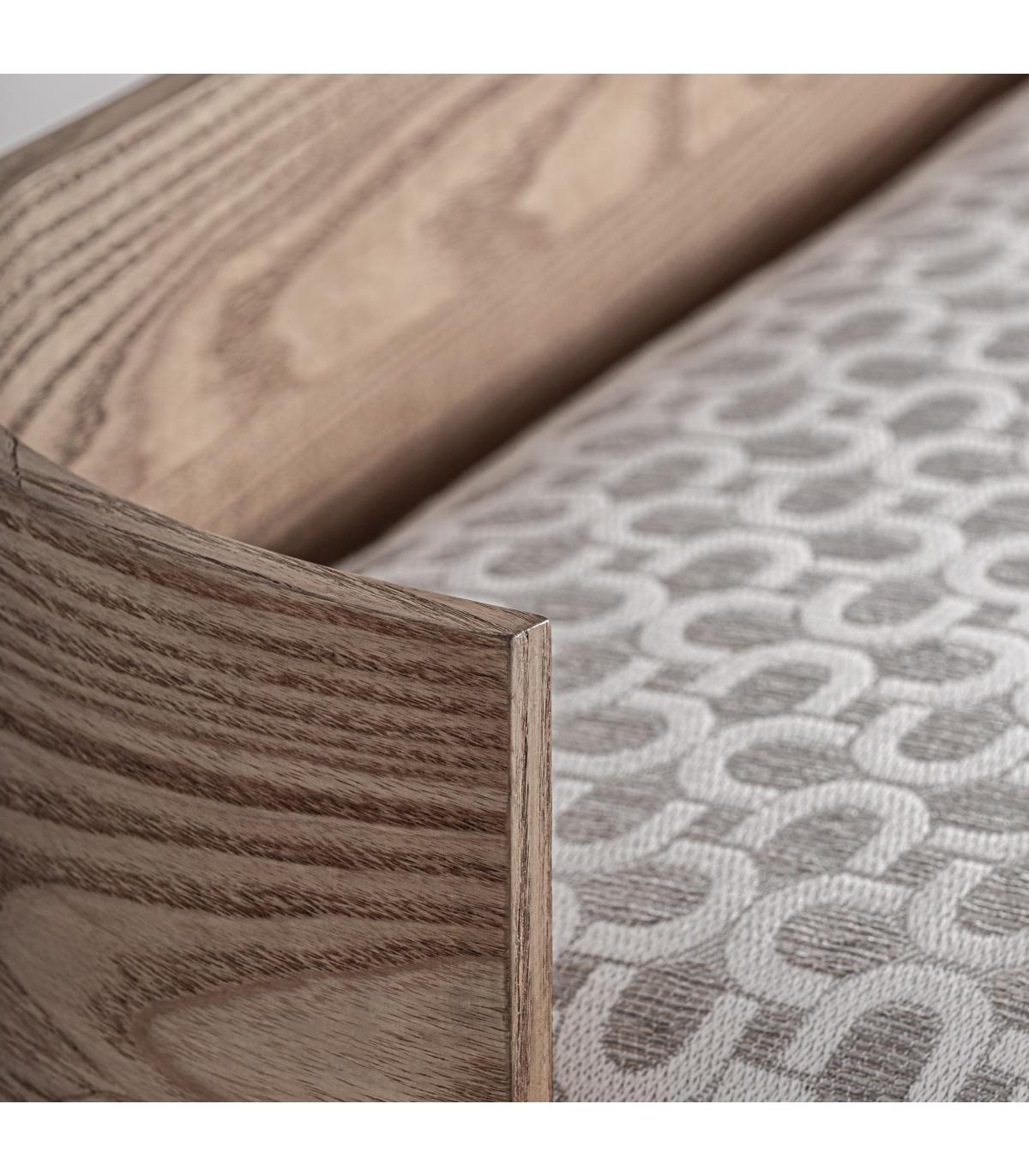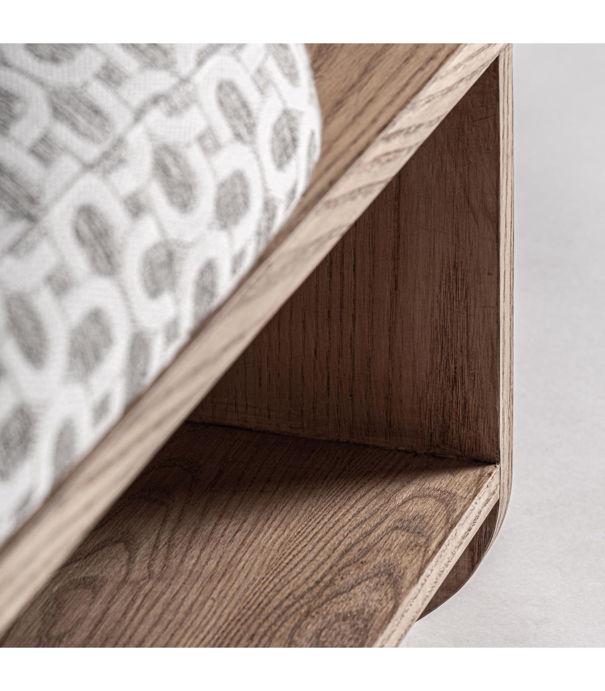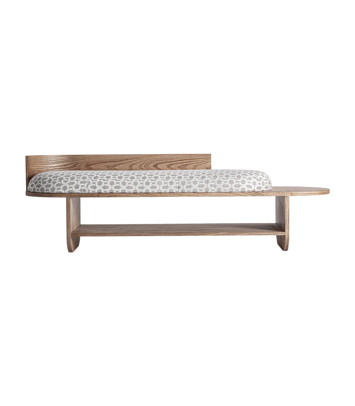 Pie de cama fabricado en poliéster combinado con madera dm y espuma en color marrón.