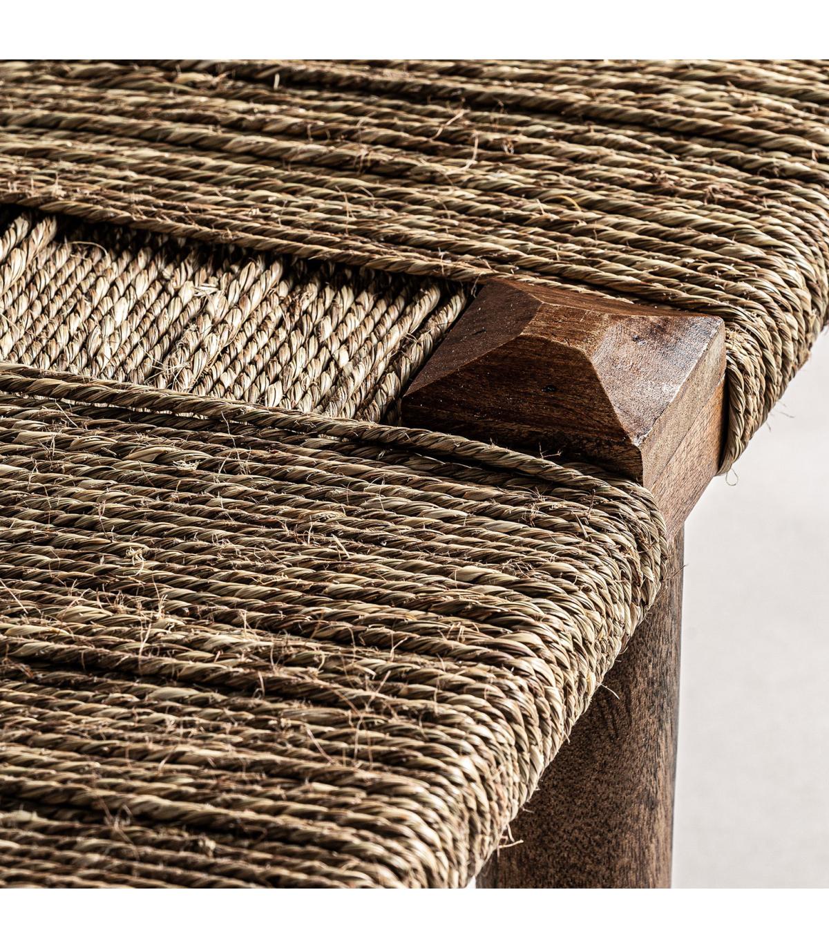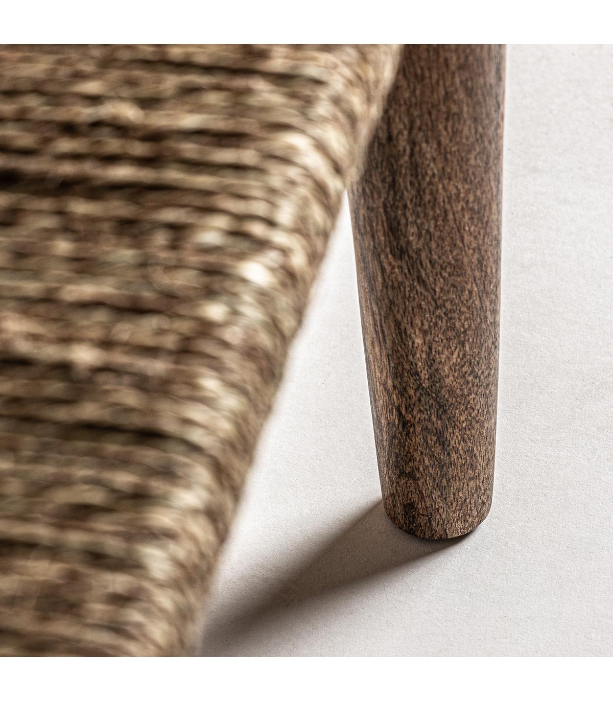 Banco Tassarolo de estilo étnico fabricado en yute en color marrón combinado con madera de mango. Producto desmontable.