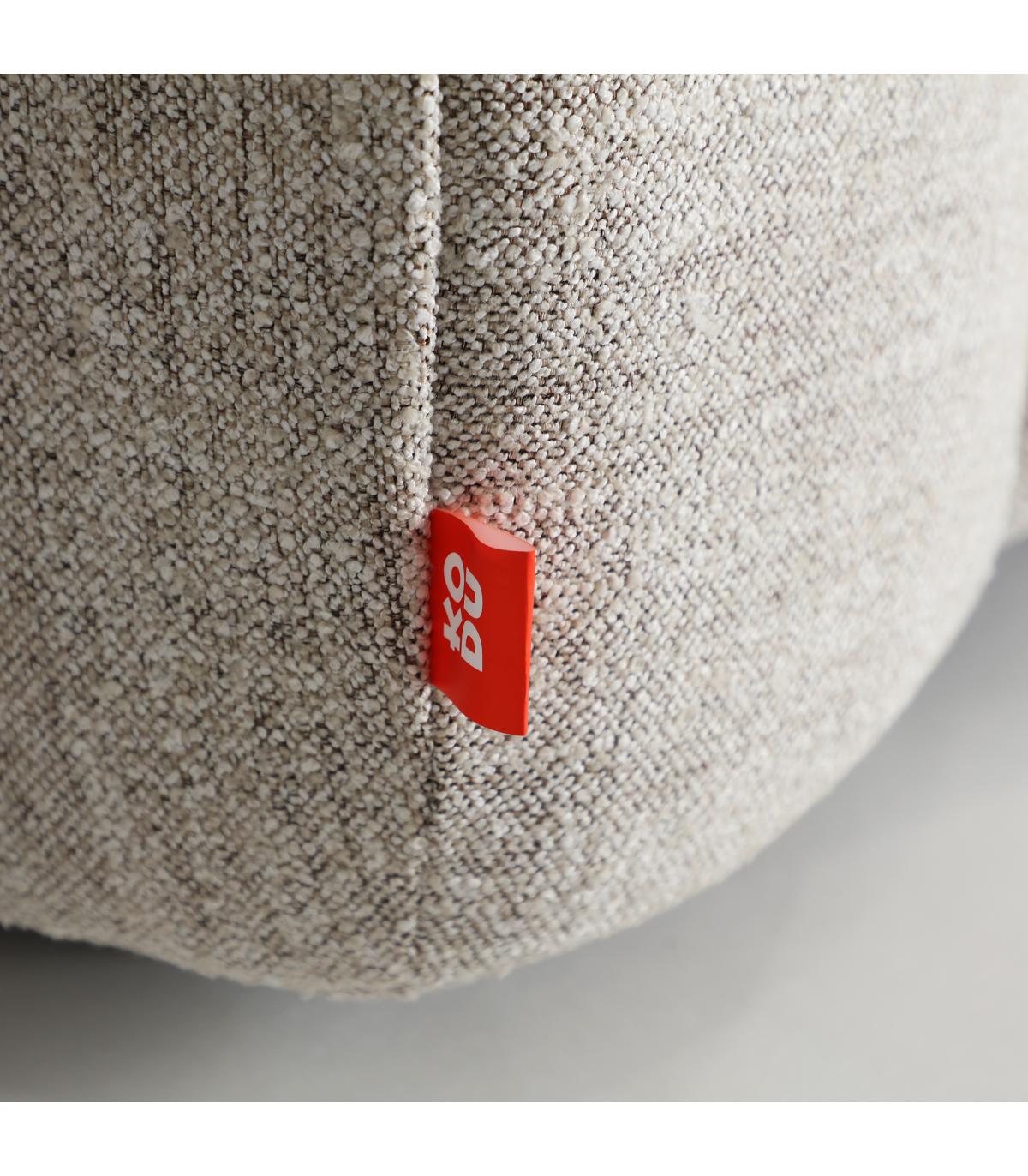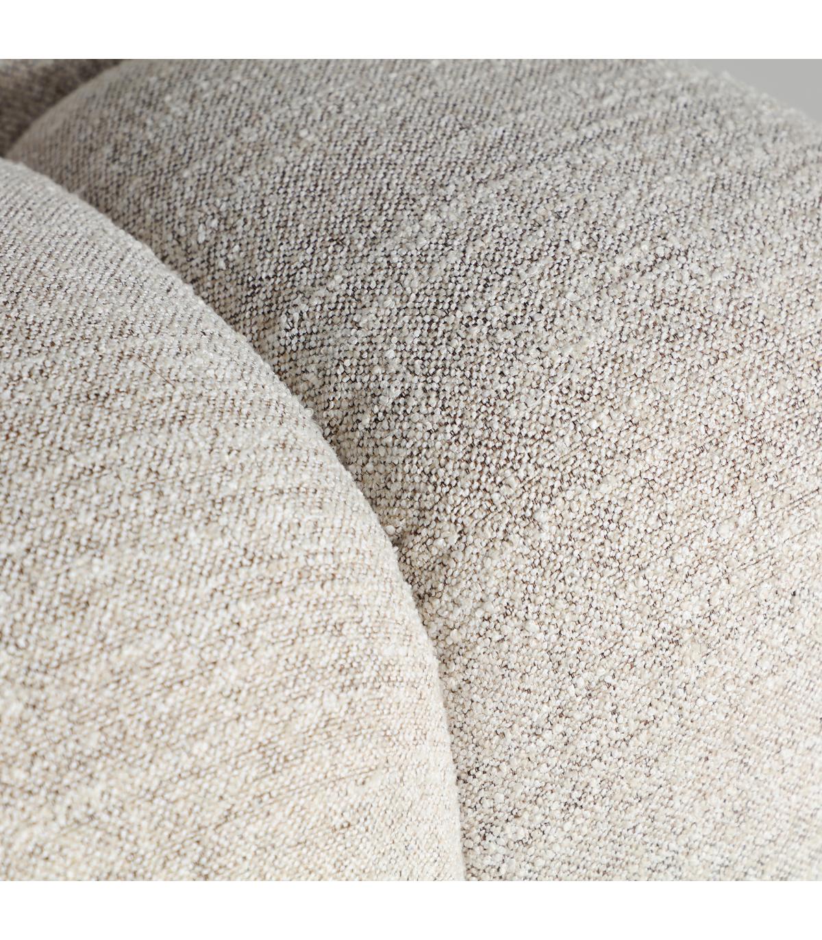 Pie de cama Sedrun de estilo contemporáneo, fabricado en poliéster en color beige, combinado con madera dm.