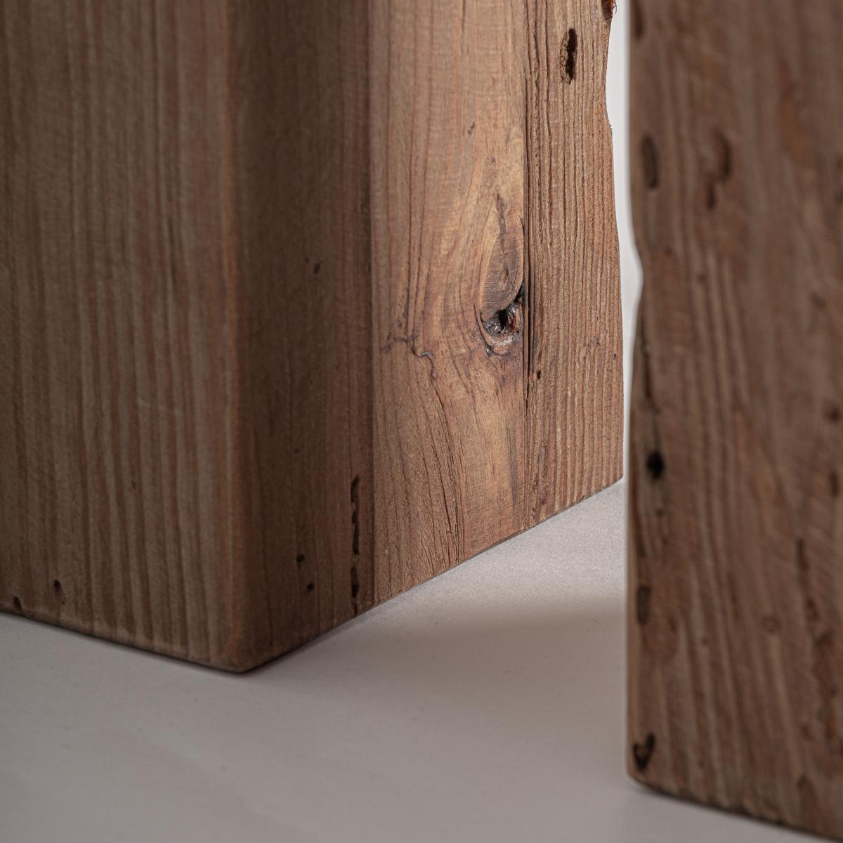 Banco Truel de estilo clásico fabricado en madera de pino reciclado en color marrón.
