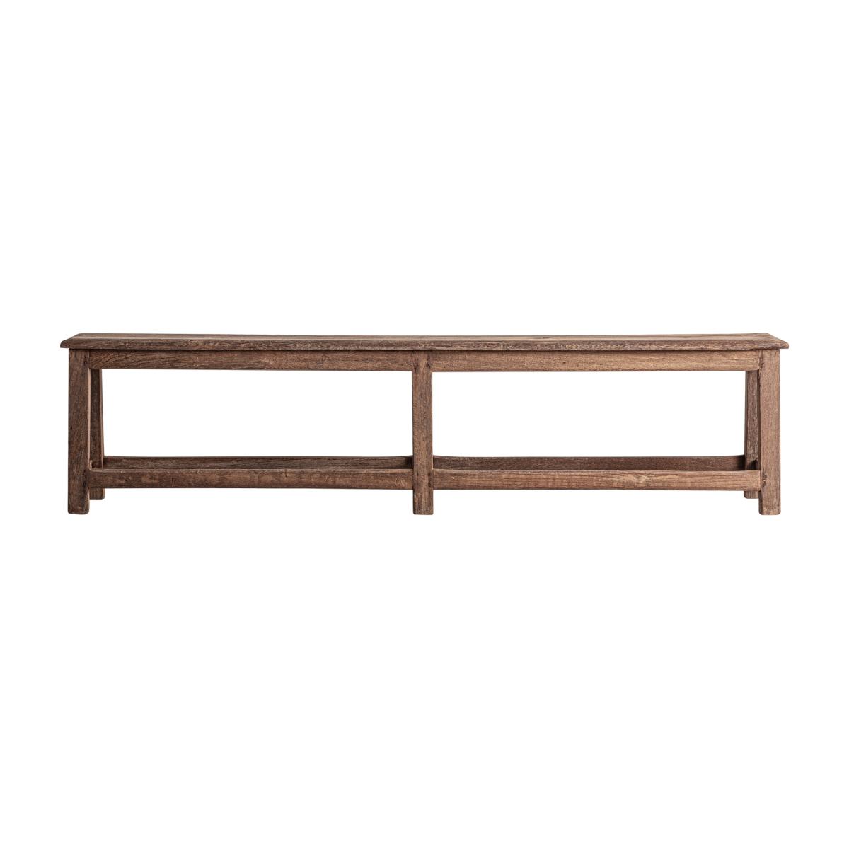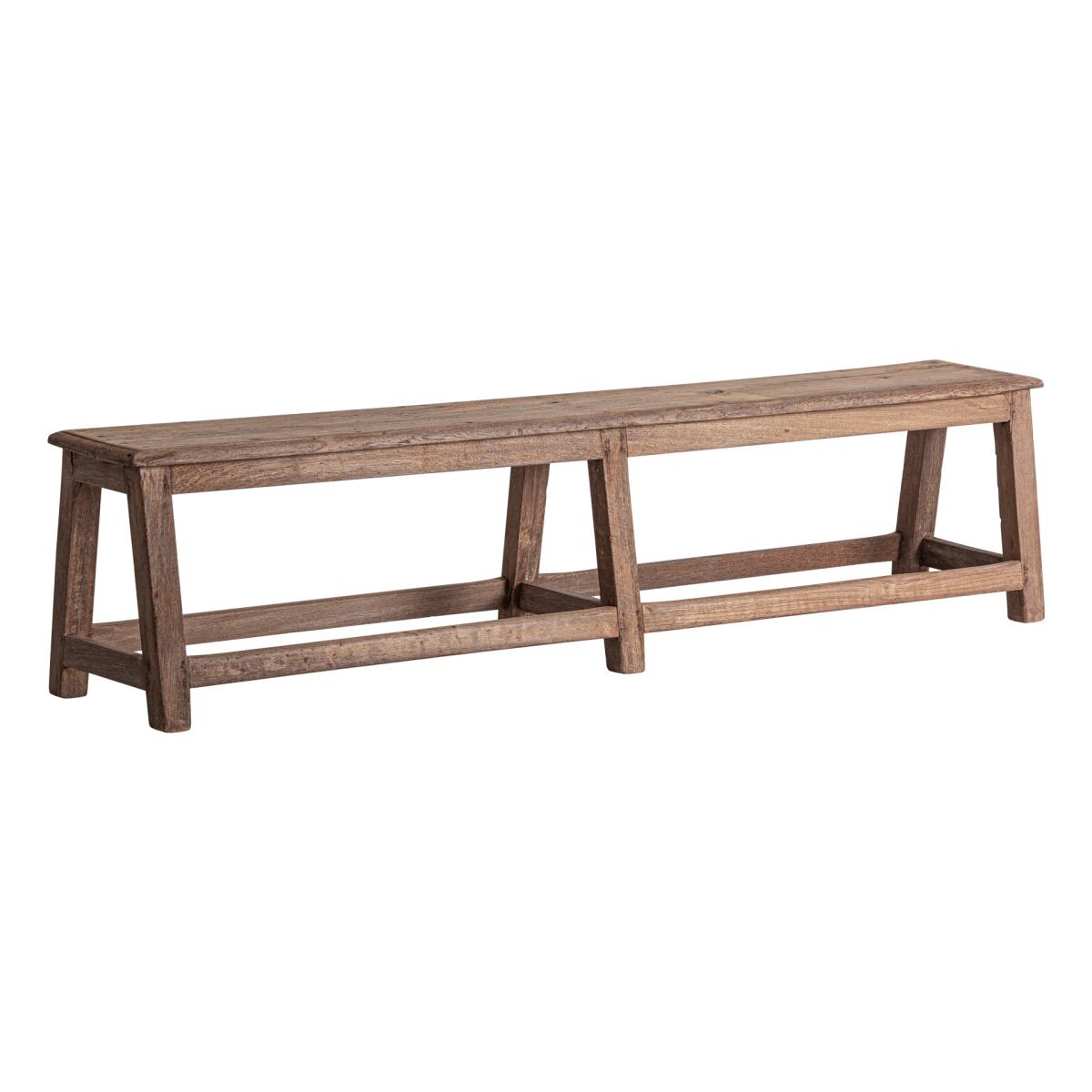 Banco, fabricado en madera de teka en color marrón.