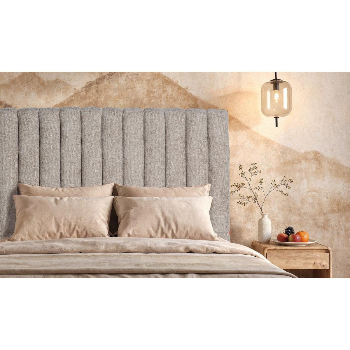 Cabezal, fabricado en poliéster en color gris, combinado con madera.