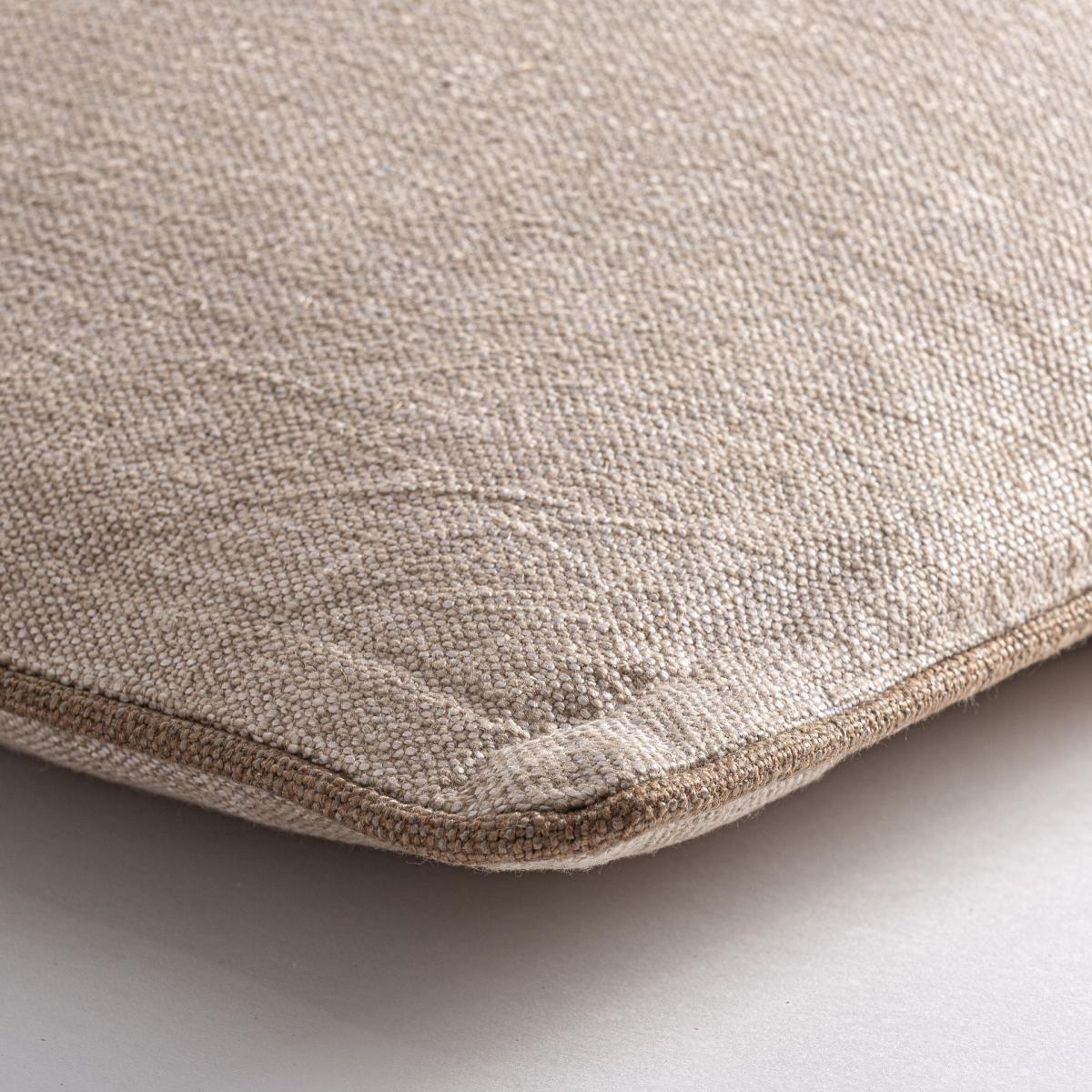 Cojín Sarabe de estilo clásico fabricado en lino en color beige combinado con fibra natural. Producto desenfundable.