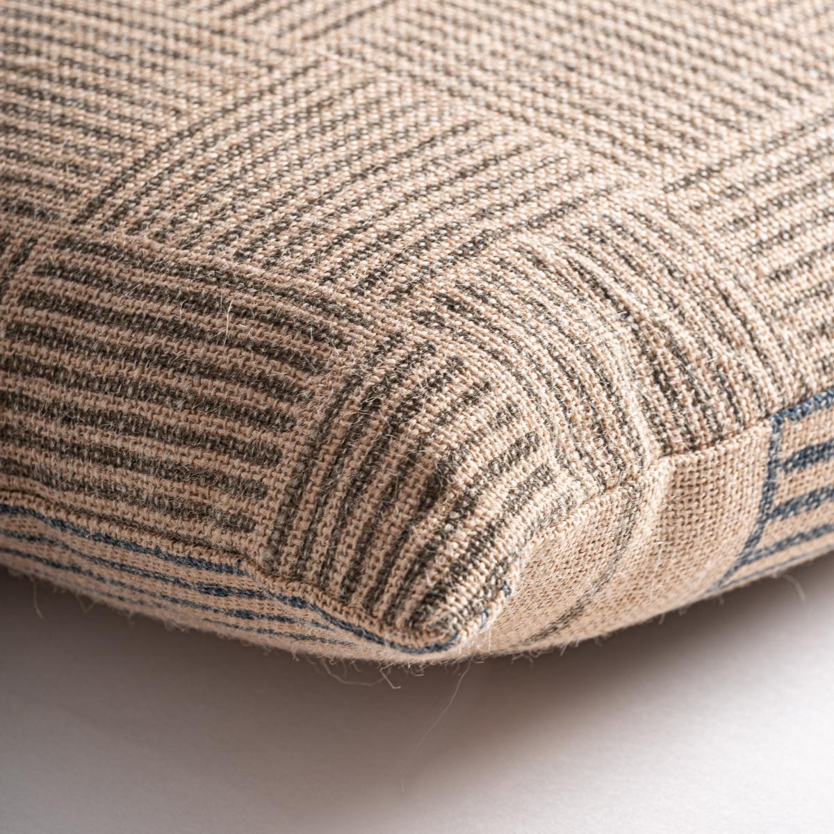 Cojín Khepri de estilo clásico fabricado en yute en color beige combinado con fibra natural en color negro. Producto desenfundable.