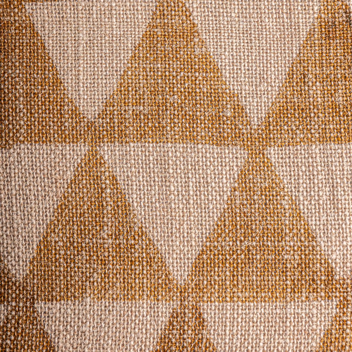 Cojín Khonsu de estilo clásico fabricado en yute en color beige combinado con fibra natural en color ocre. Producto desenfundable.