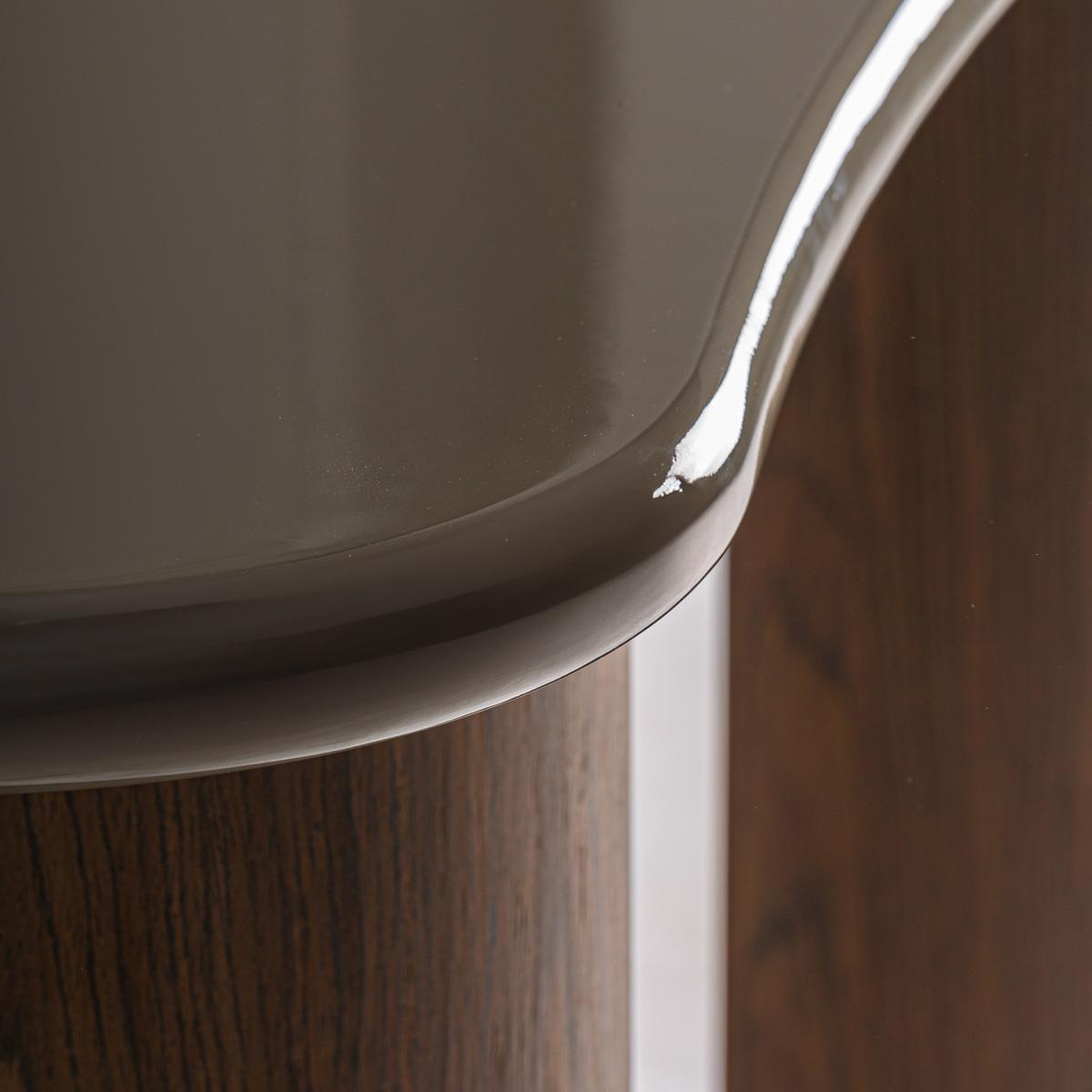 Consola Root de estilo contemporáneo, fabricado en madera dm en color beige, combinado con chapa de madera en color marrón. Producto desmontable.