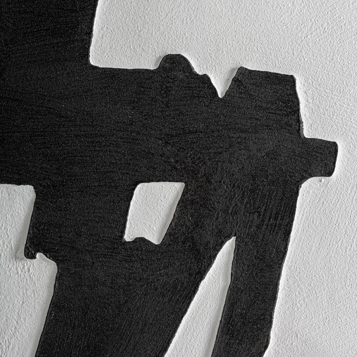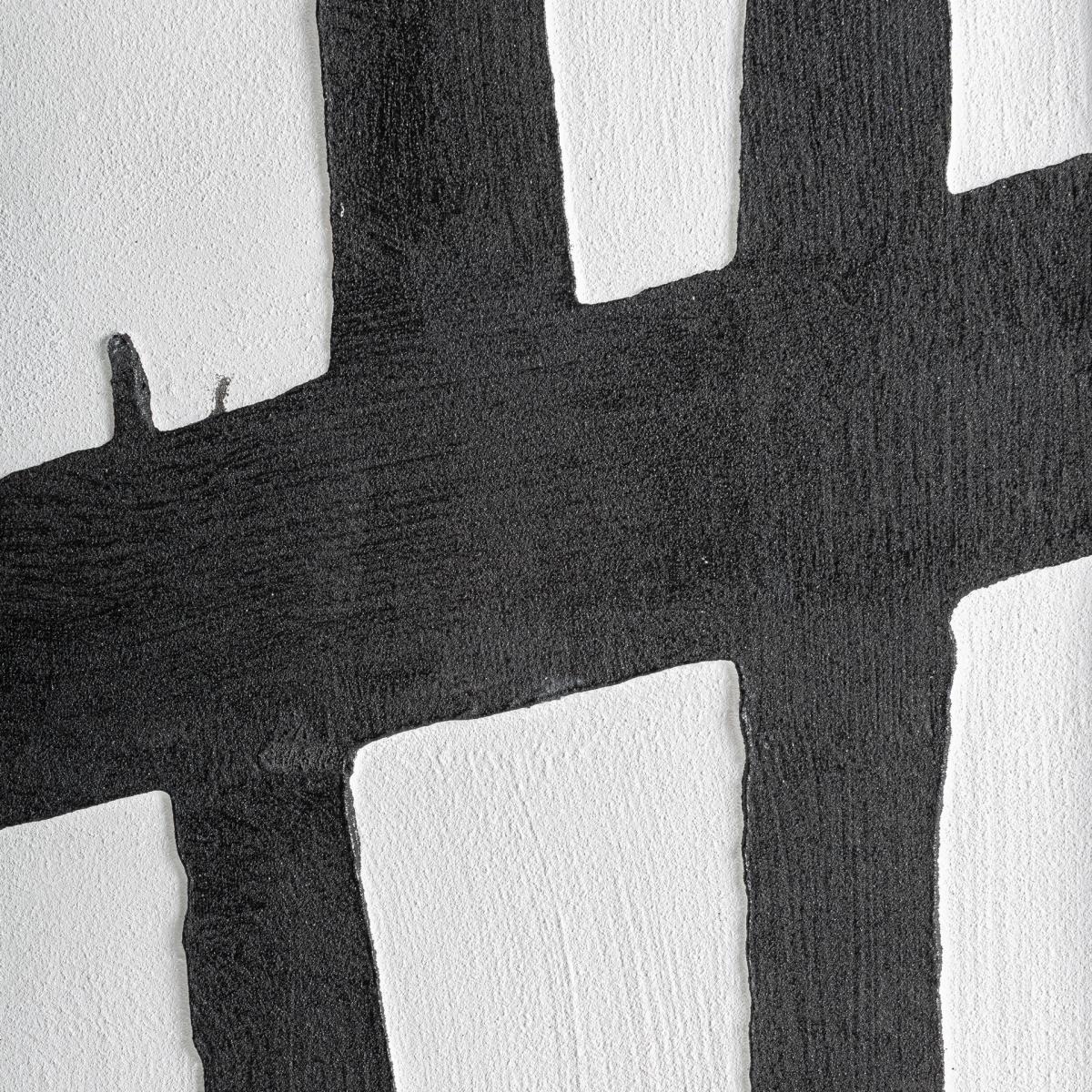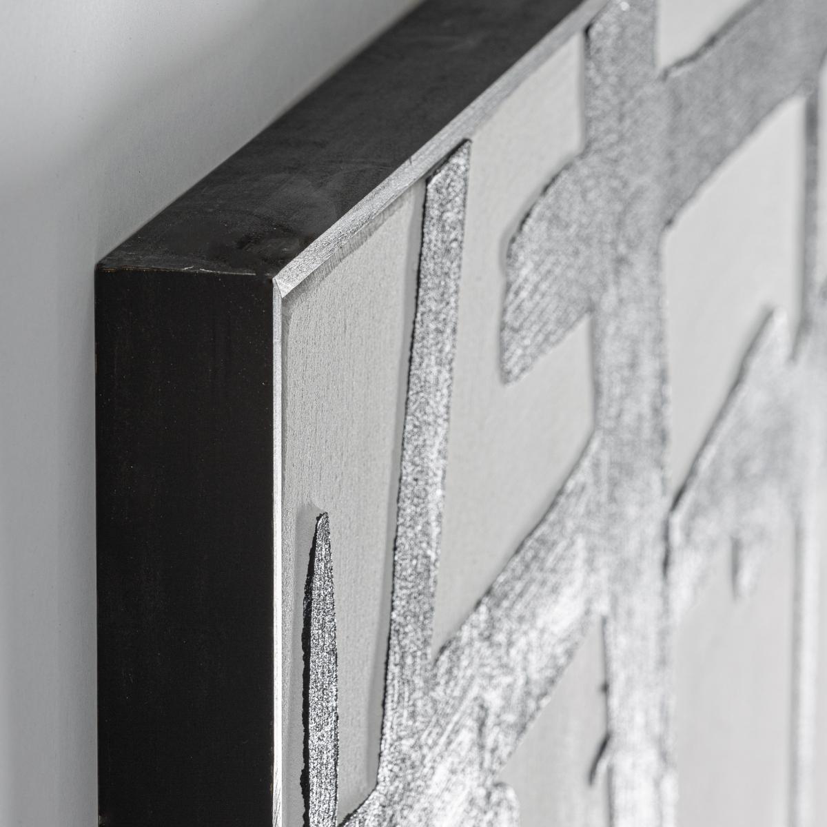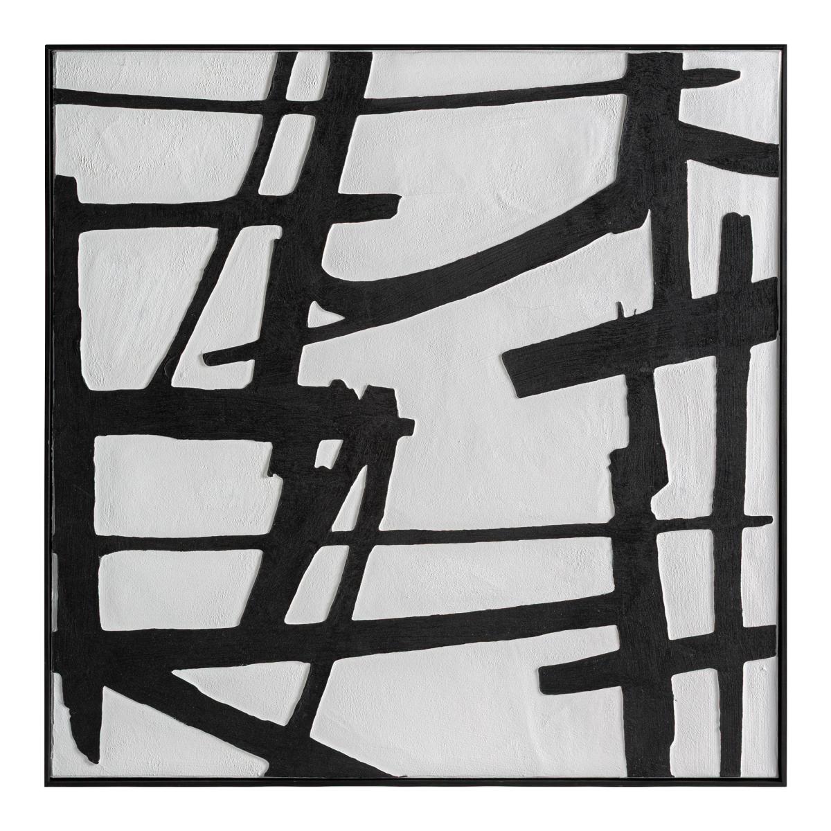 Cuadro Ezrah de estilo contemporáneo, fabricado en lienzo en color blanco, combinado con madera de pino en color negro.