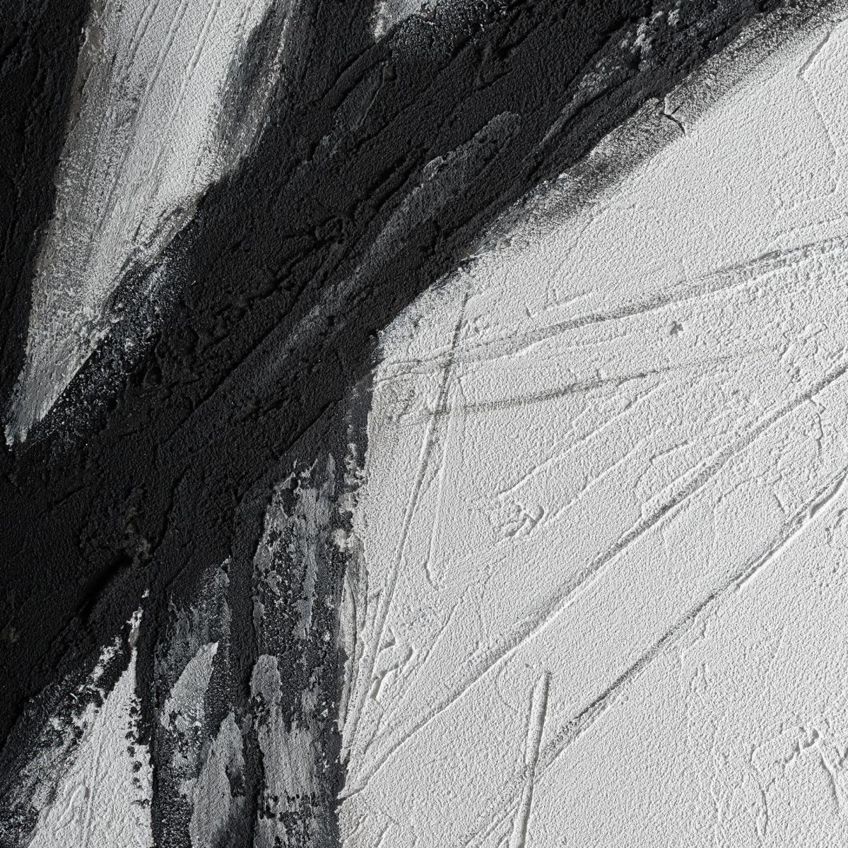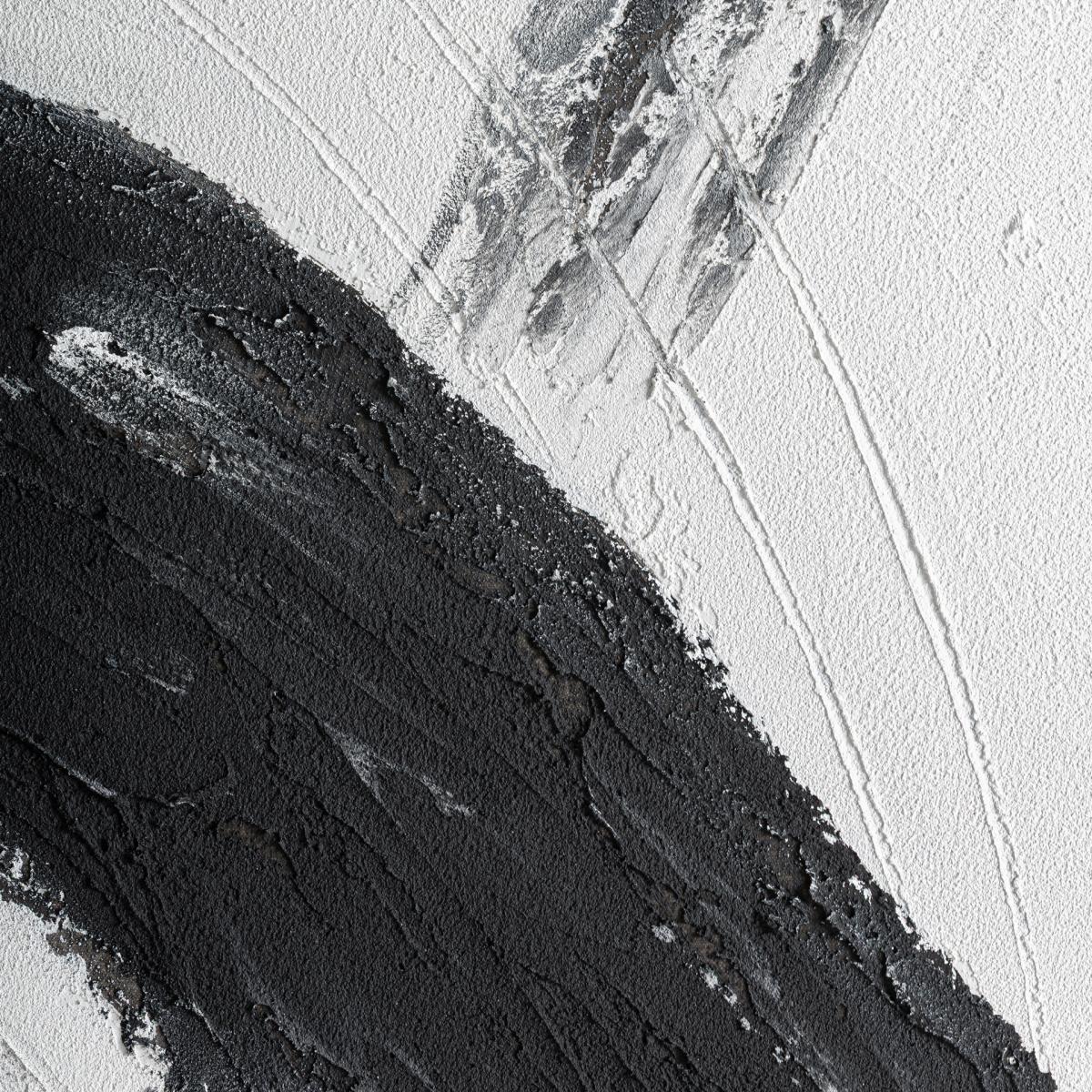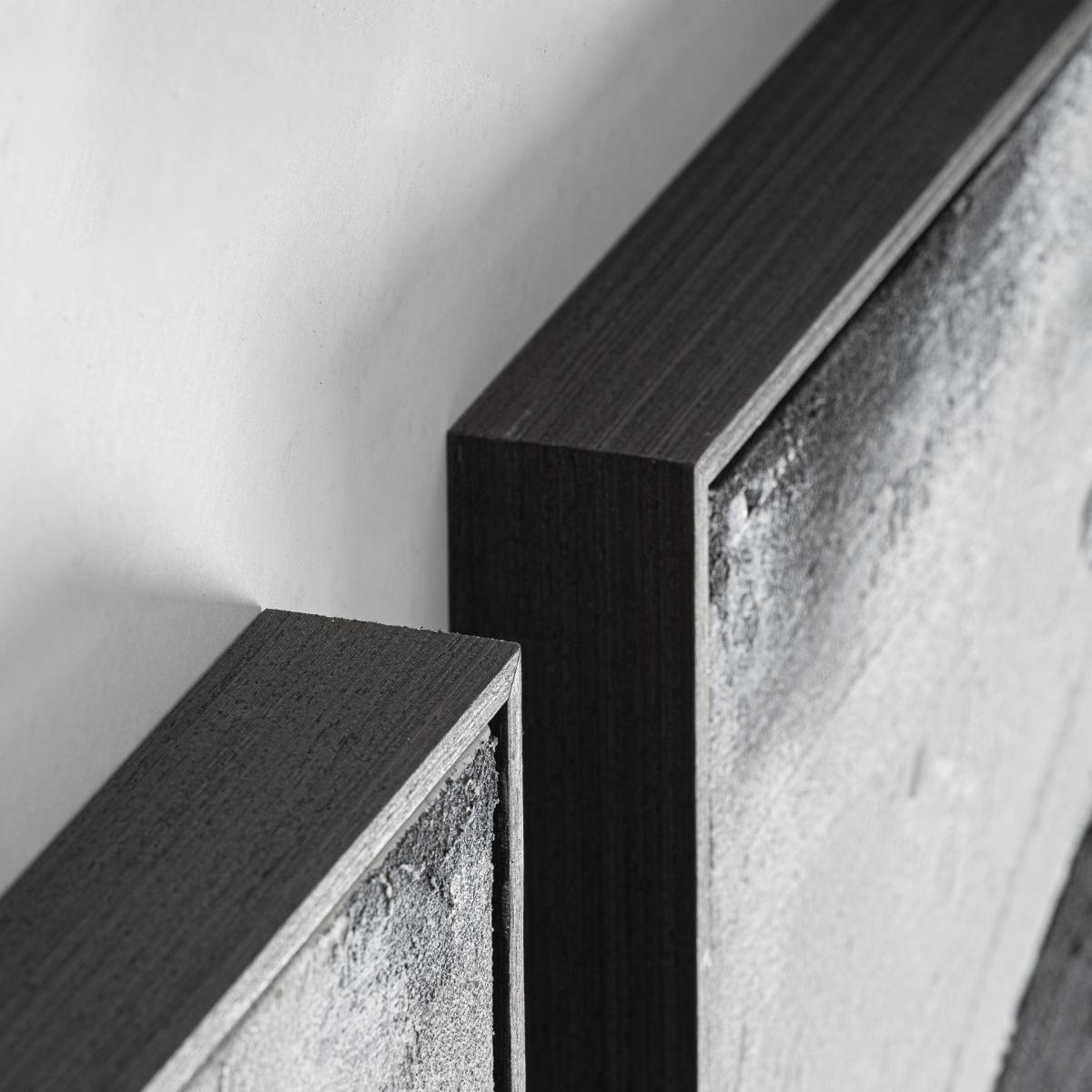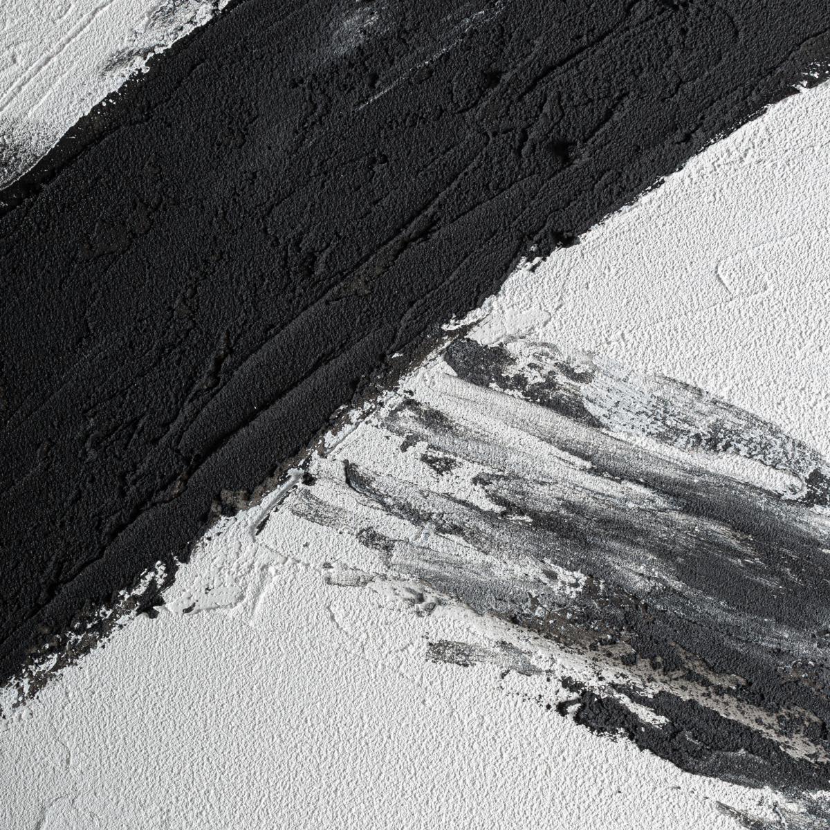 Cuadro j 3 Orion de estilo contemporáneo, fabricado en lienzo en color negro, combinado con madera de pino en color negro.