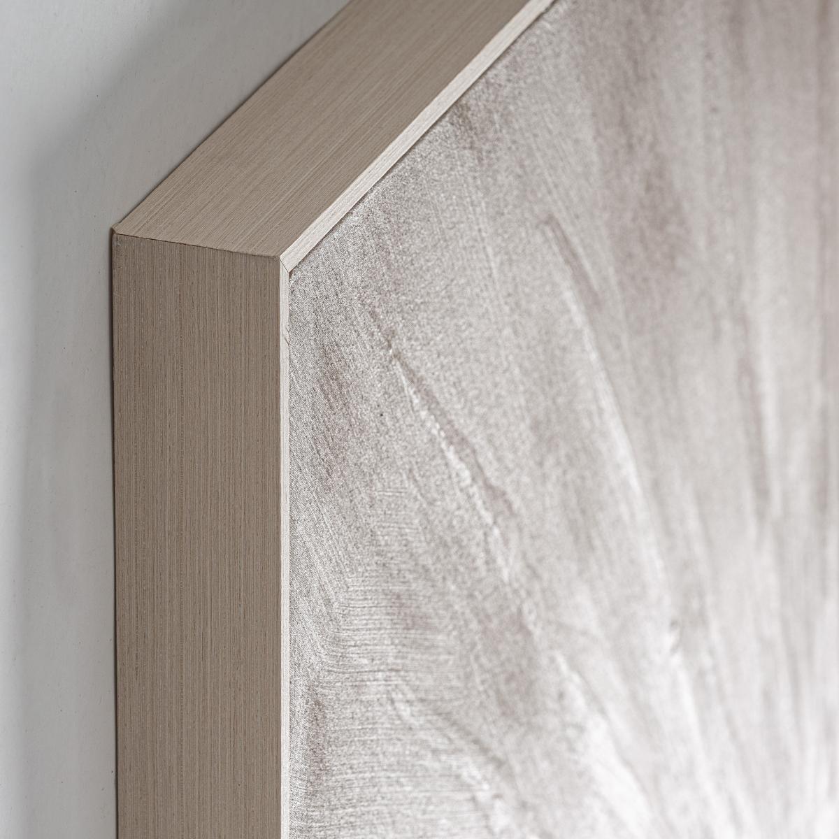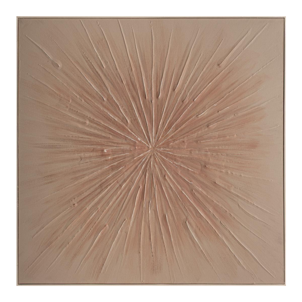 Cuadro Eider de estilo contemporáneo, fabricado en lienzo en color arena, combinado con madera de pino en color marrón claro.