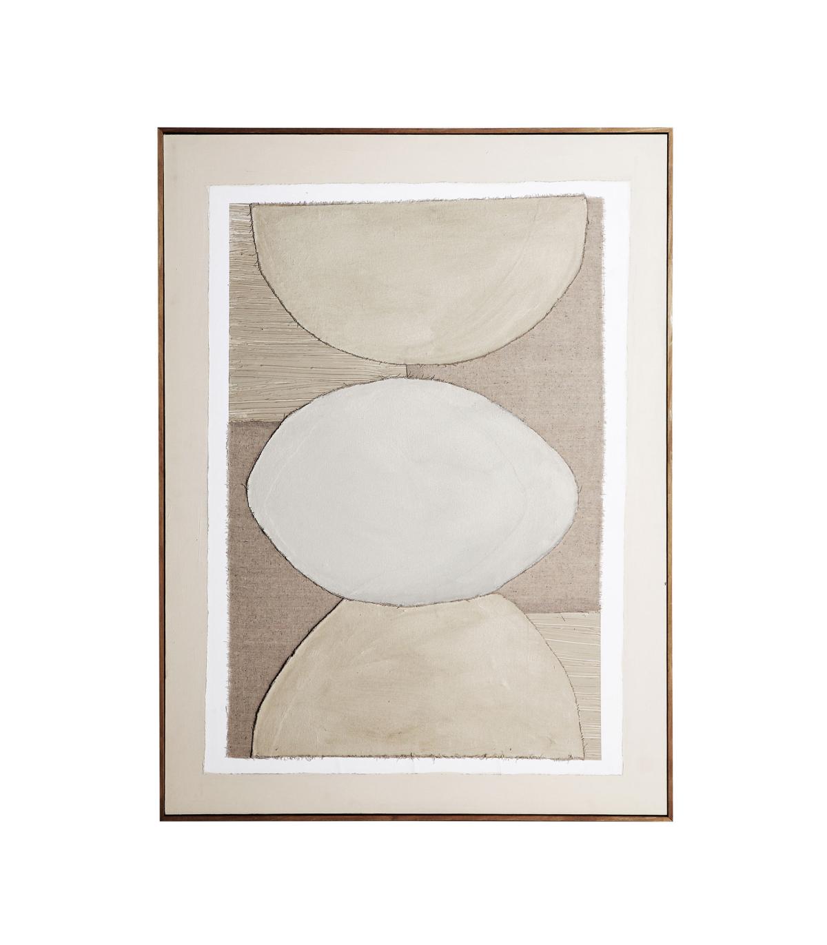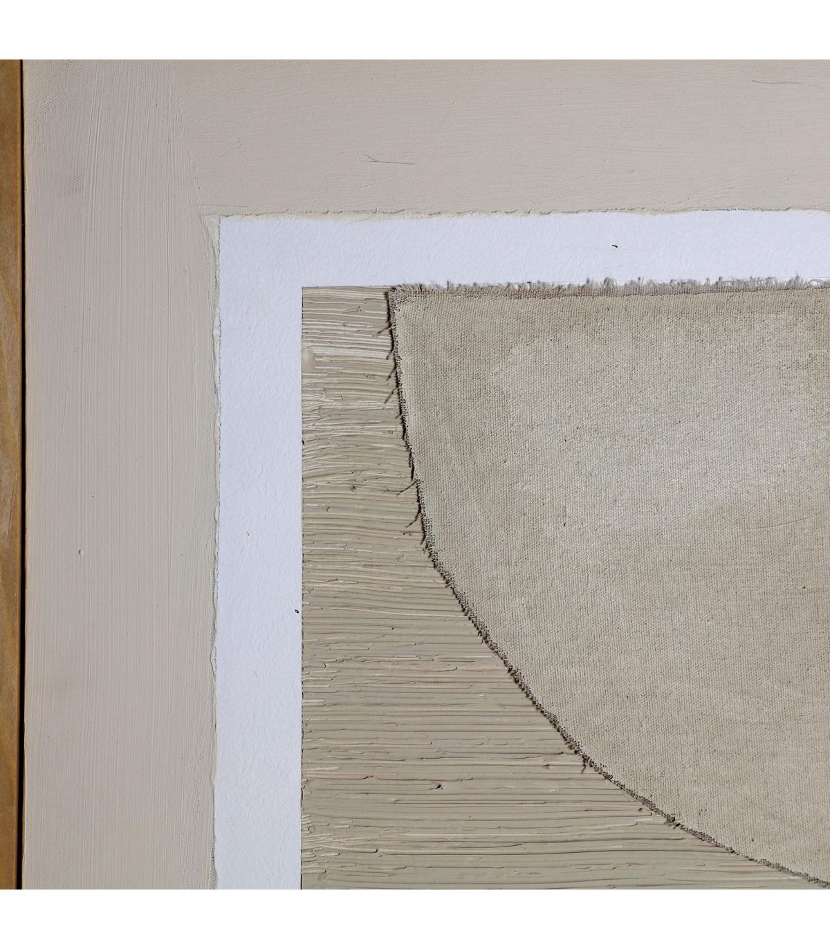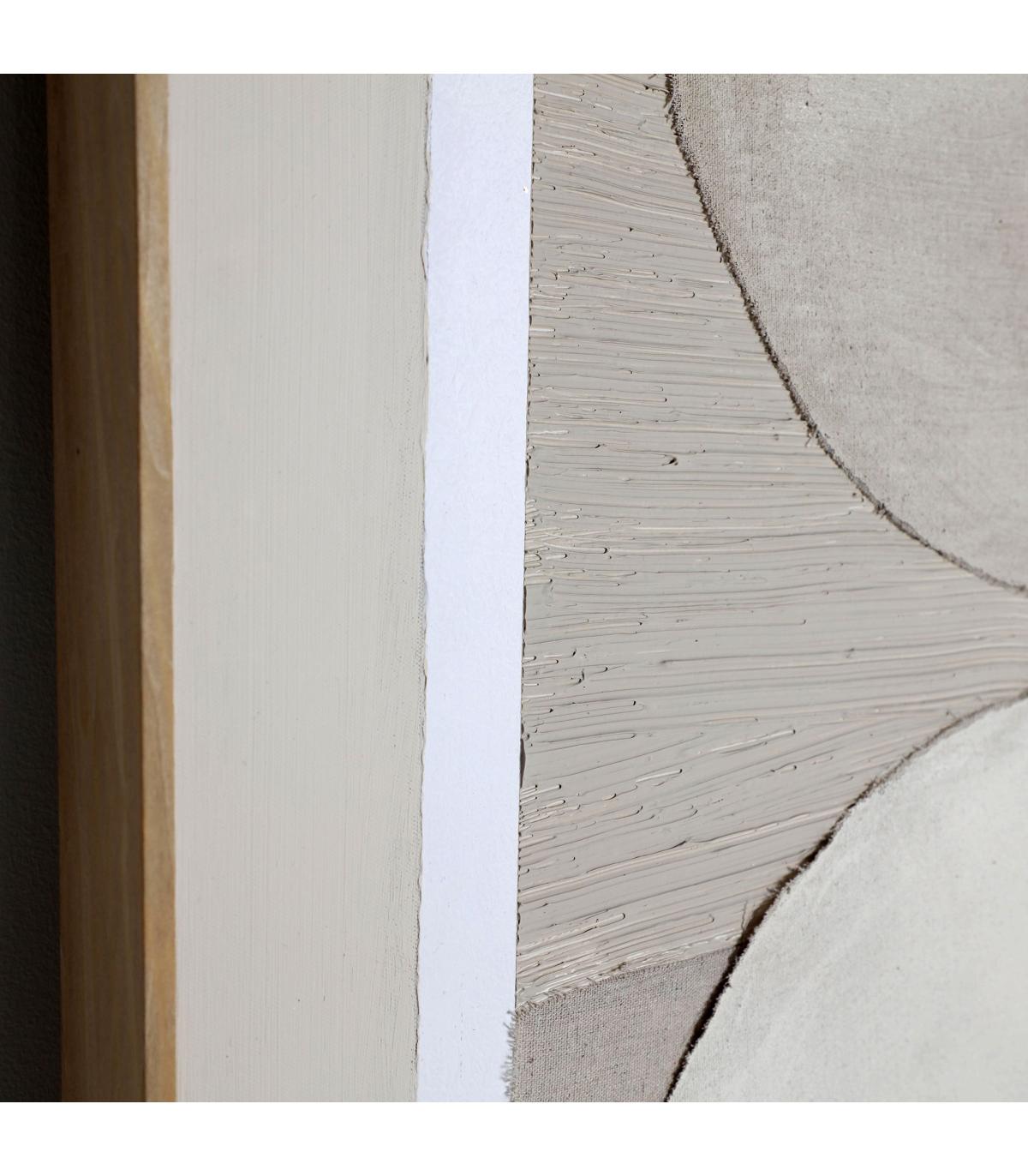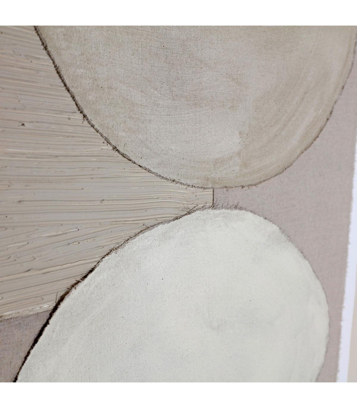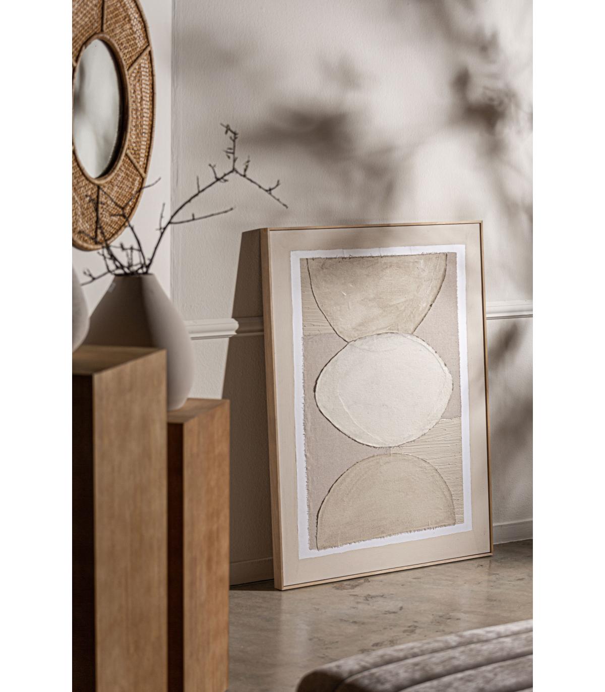 Cuadro rectangular valentine de estilo contemporáneo, fabricado en lienzo en color beige con acabado artesanal, combinado con madera de pino en color marrón claro.