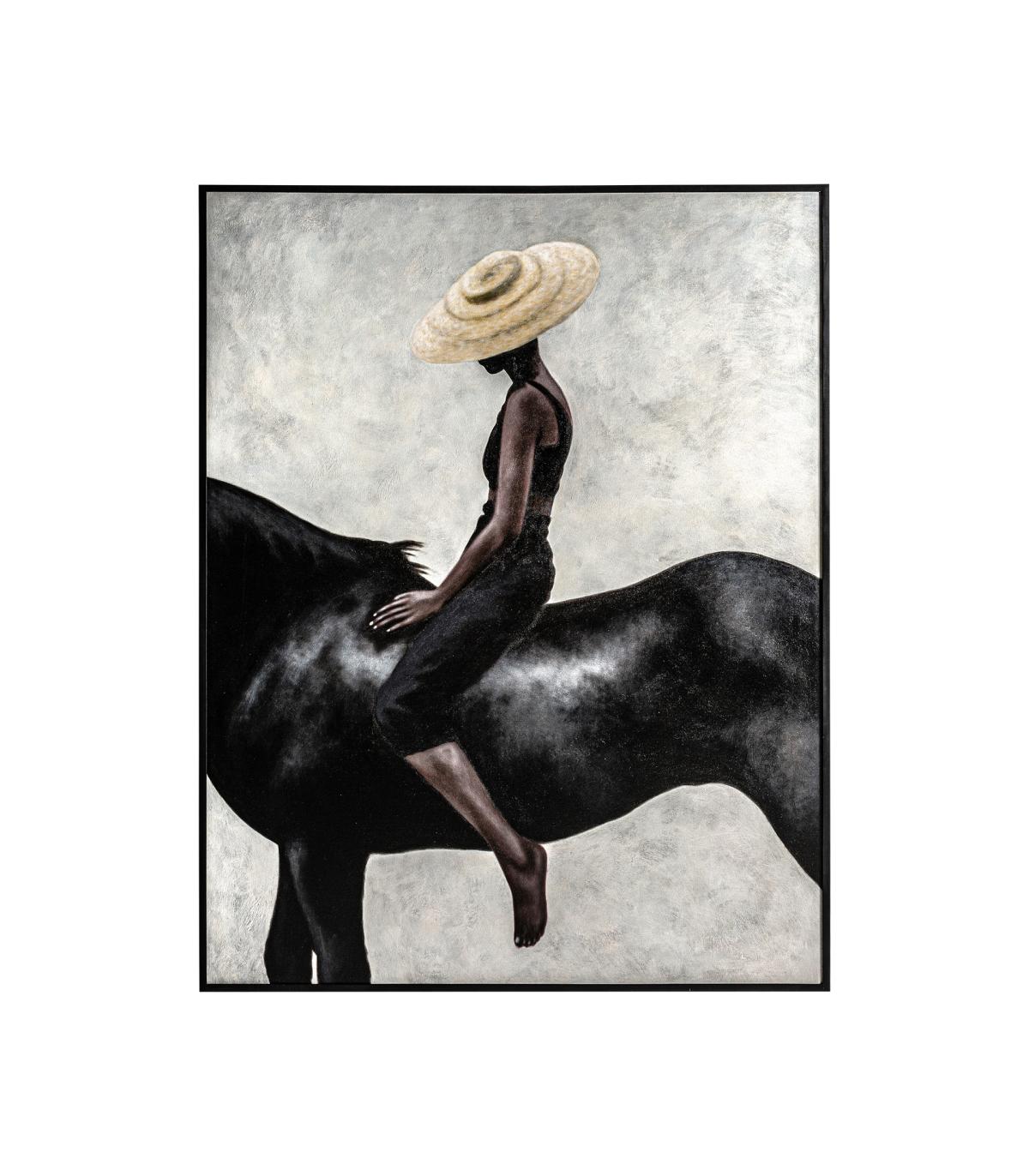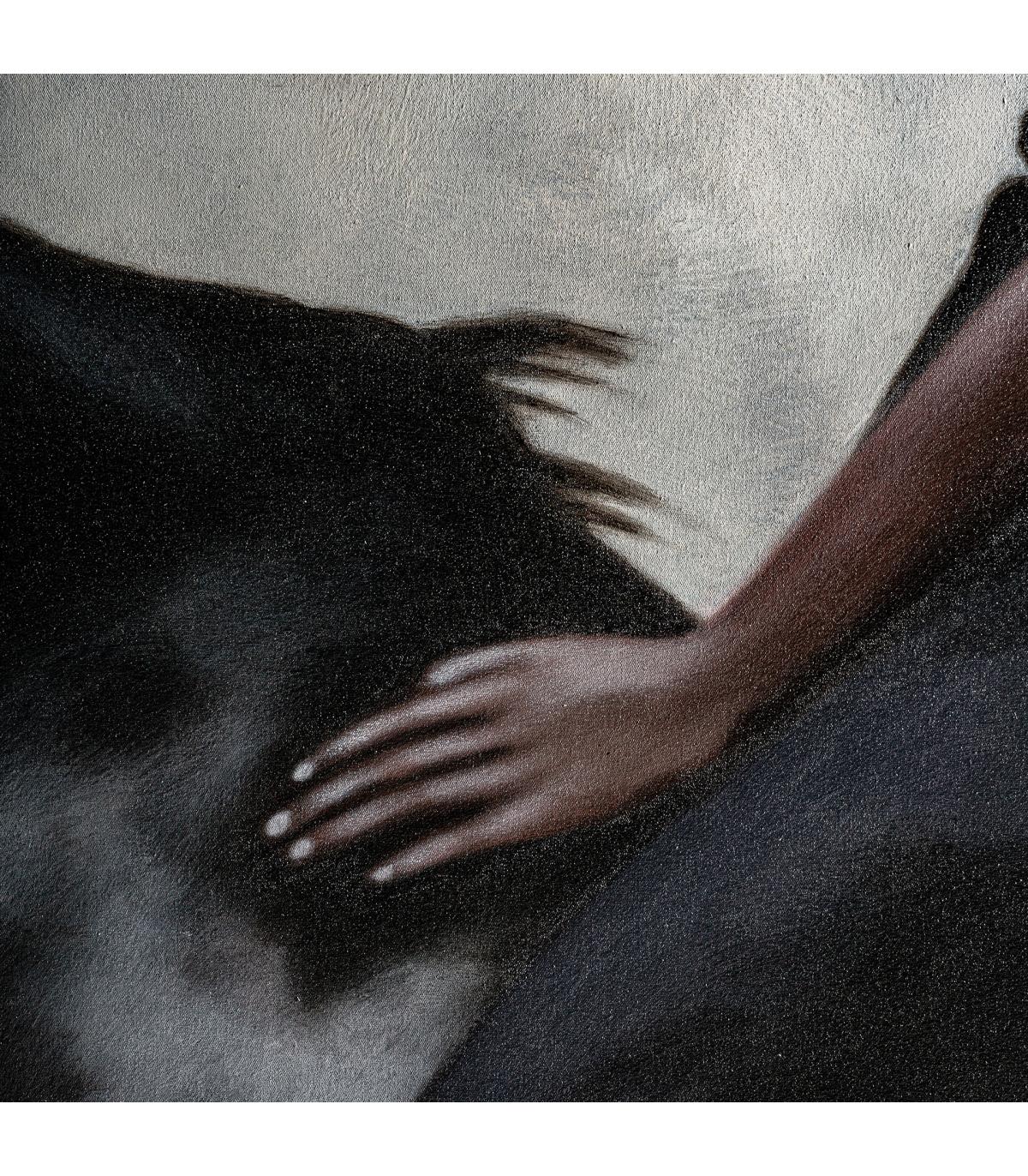 Cuadro Adonis de estilo contemporáneo fabricado en lienzo en color tonos oscuros con acabado artesanal combinado con madera de pino en color negro.