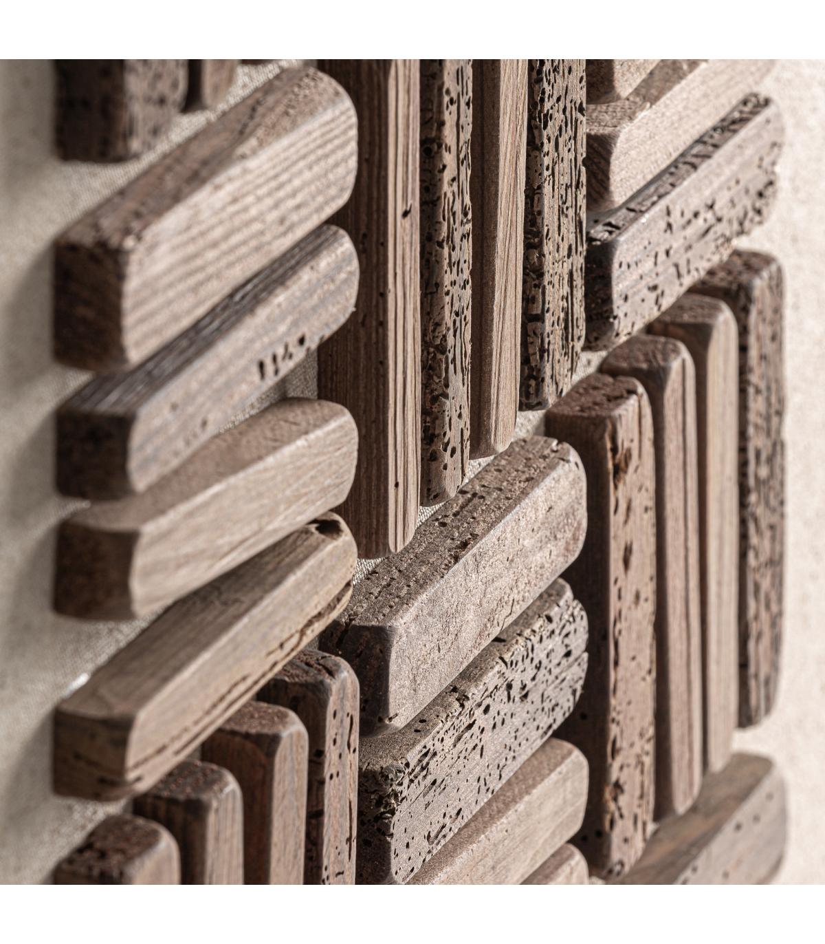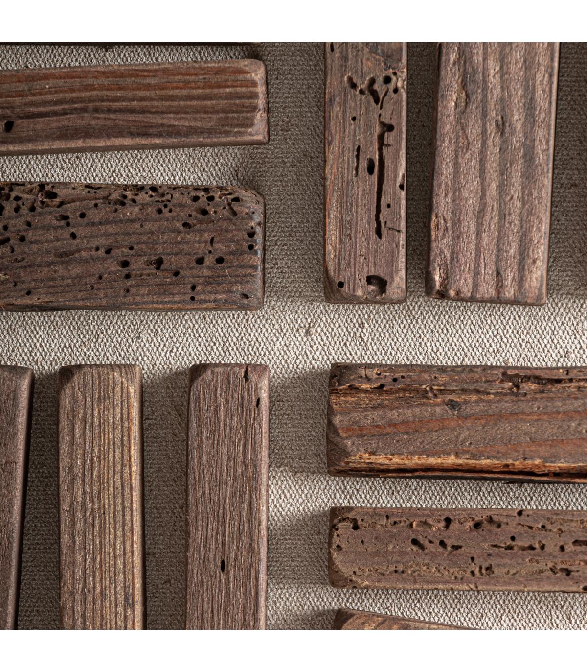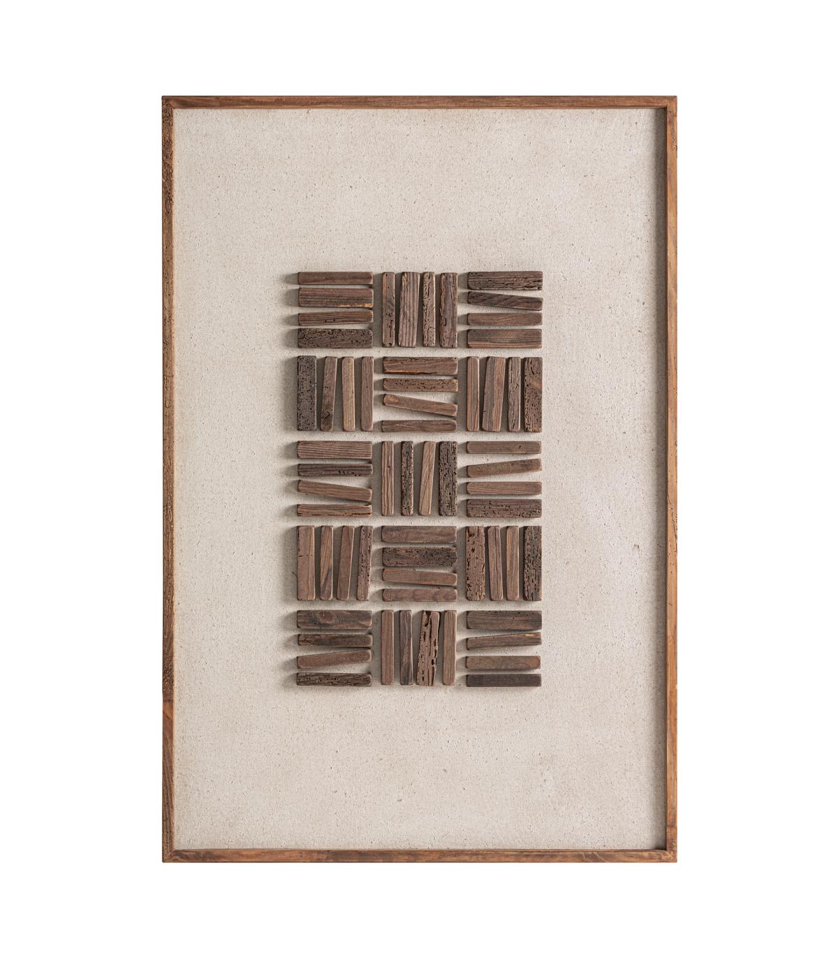 Cuadro fabricado en madera de pino reciclado en color marrón en color blanco.
