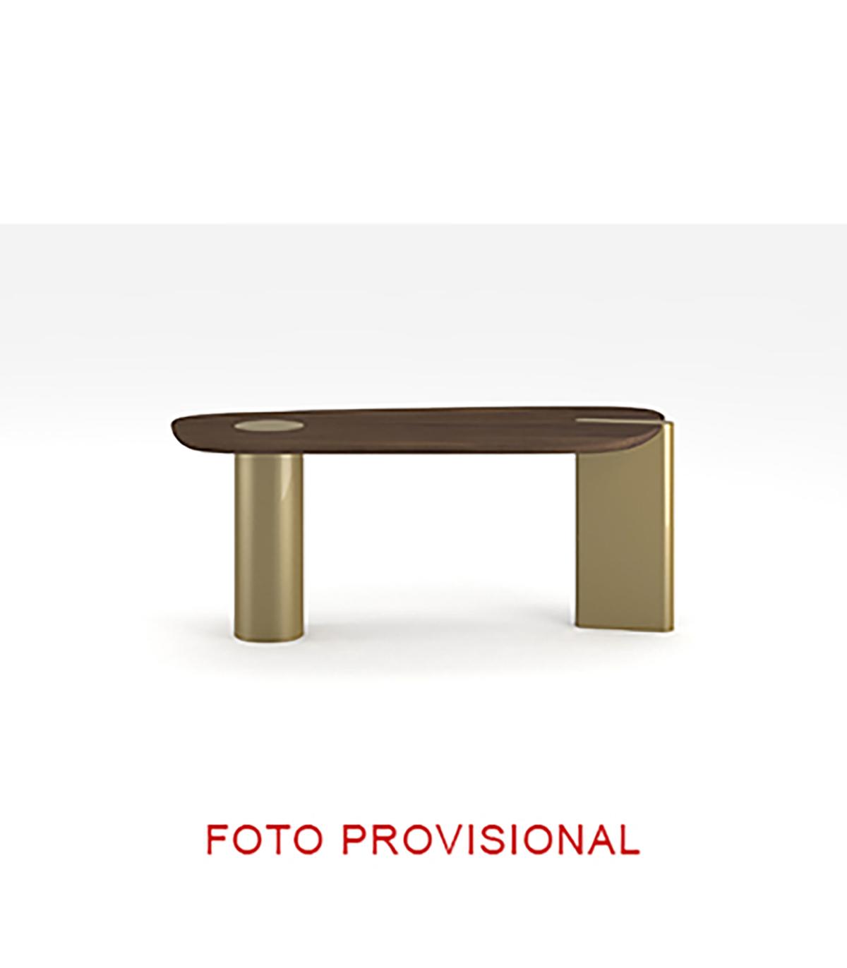 Escritorio fabricado en chapa de nogal combinado con madera dm y acero inoxidable.