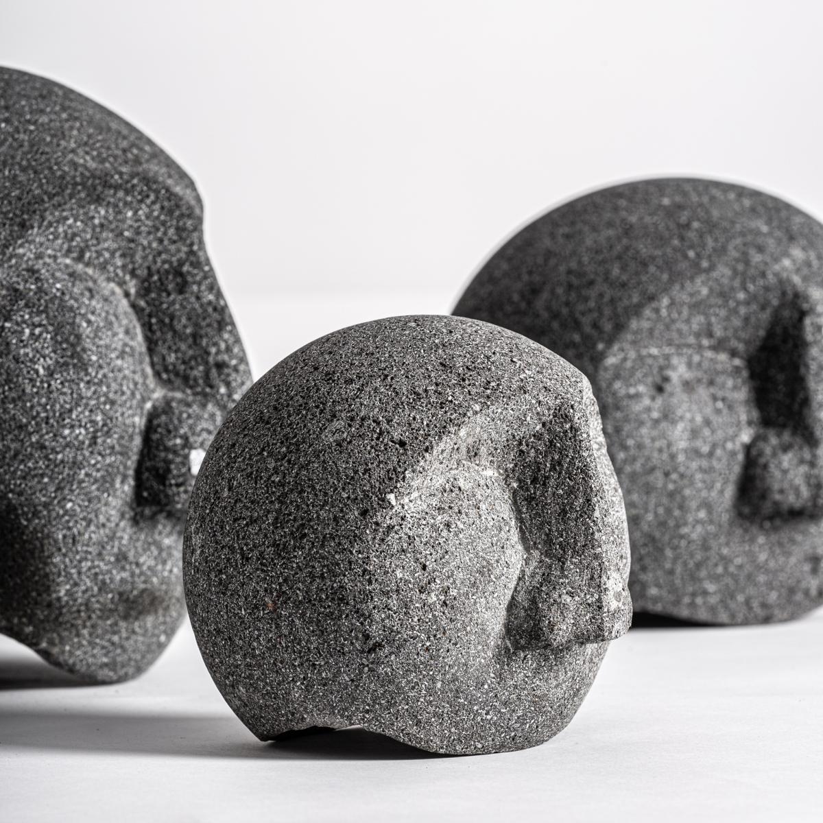 Figura decorativa j 3 fabricado en piedra volcánica en color negra.