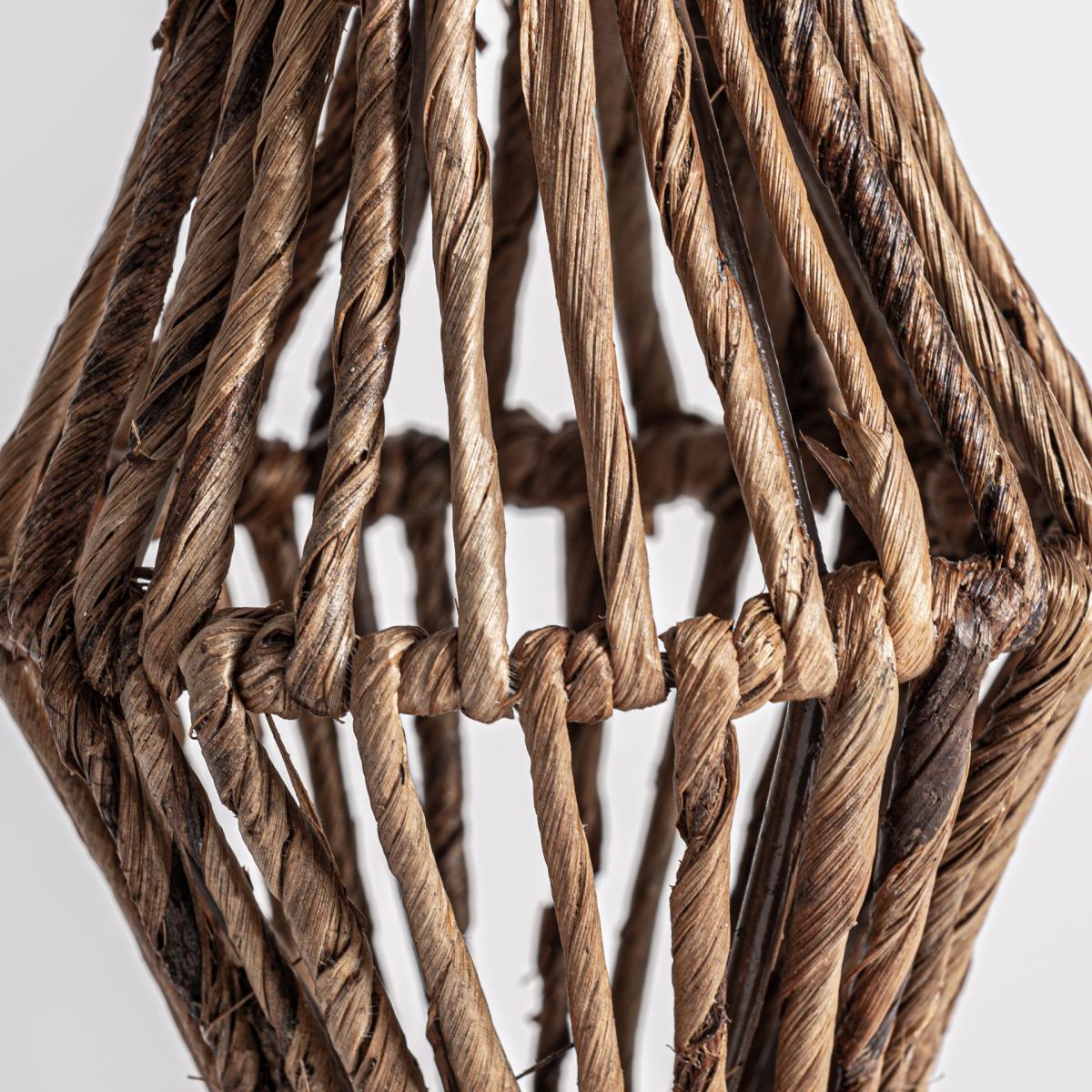 Figura decorativa fabricado en banano en color marrón combinado con hierro y cemento.