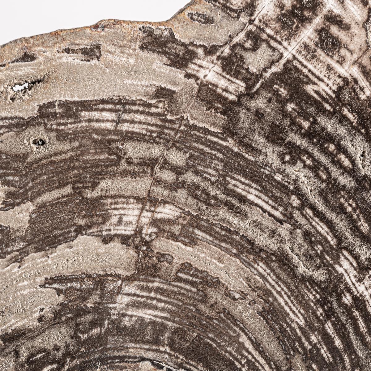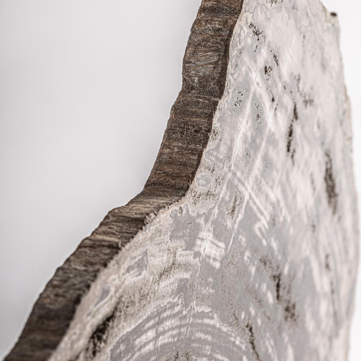 Figura decorativa, fabricado en madera petrificada en color gris, combinado con hierro.