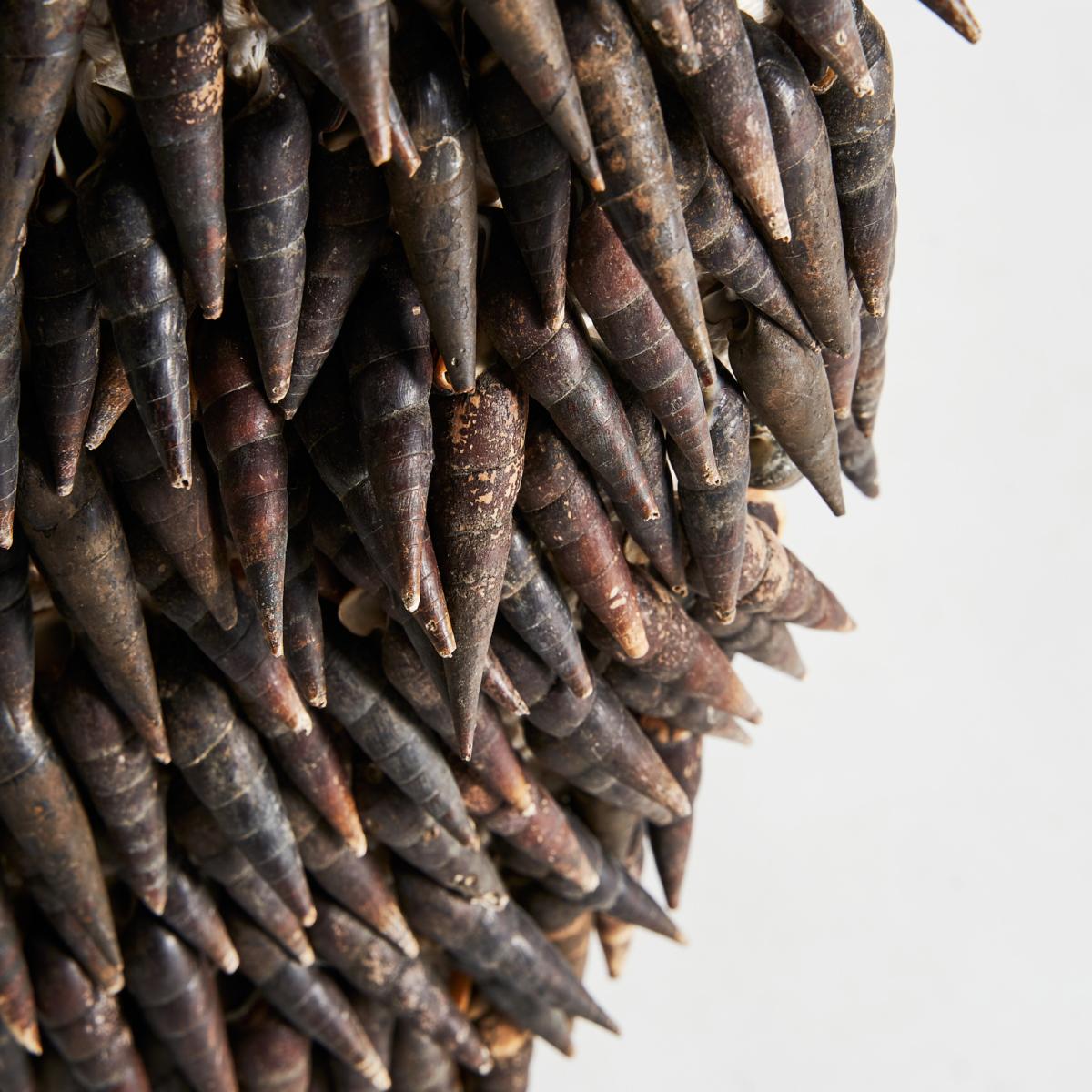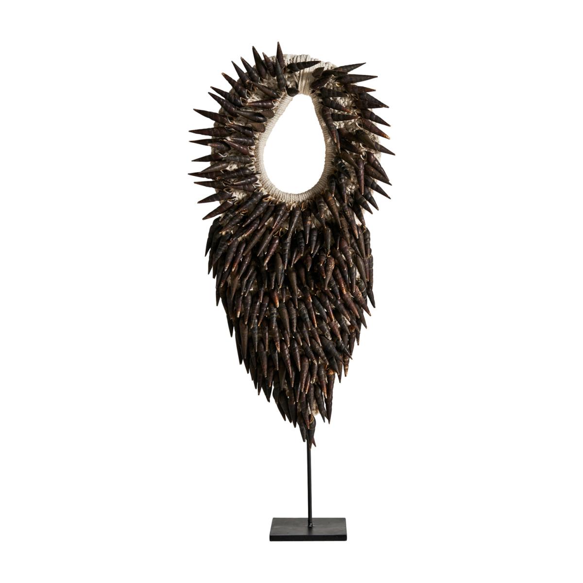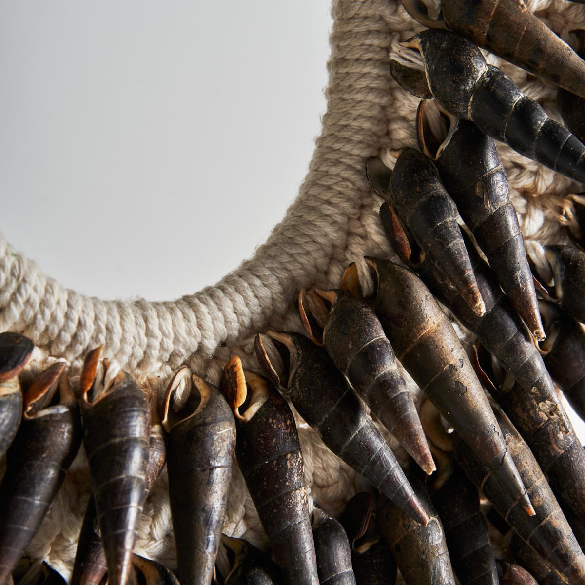Figura decorativa de estilo étnico, fabricado en concha en color negro, combinado con cuerda en color natural y hierro. Producto desmontable.