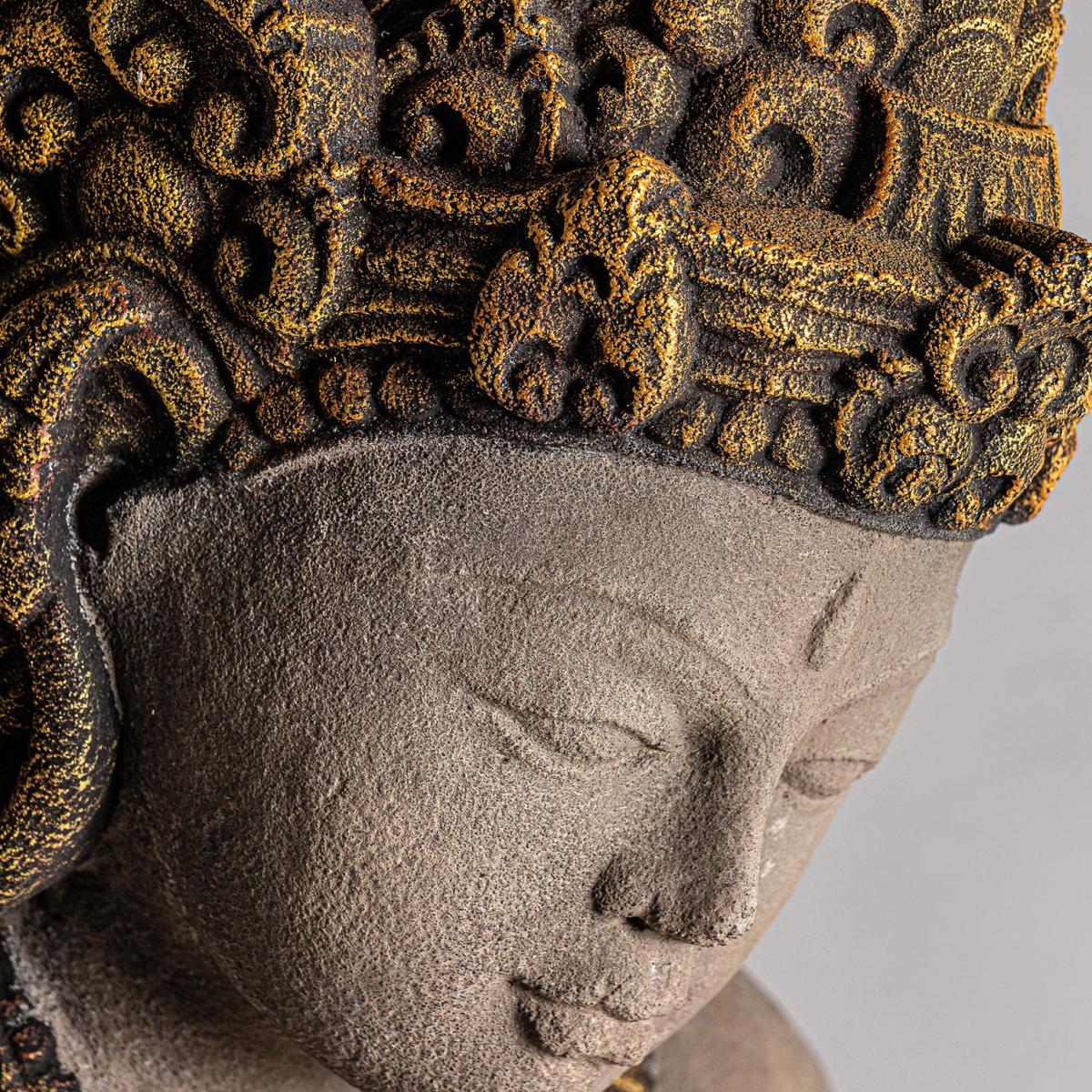 Busto balinesa de estilo oriental, fabricado en piedra en color gris con acabado envejecido en color oro.
