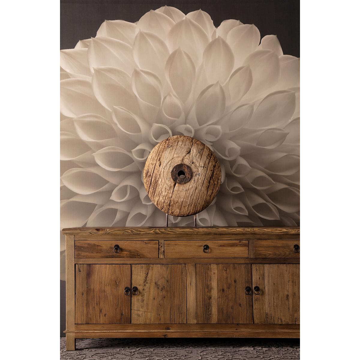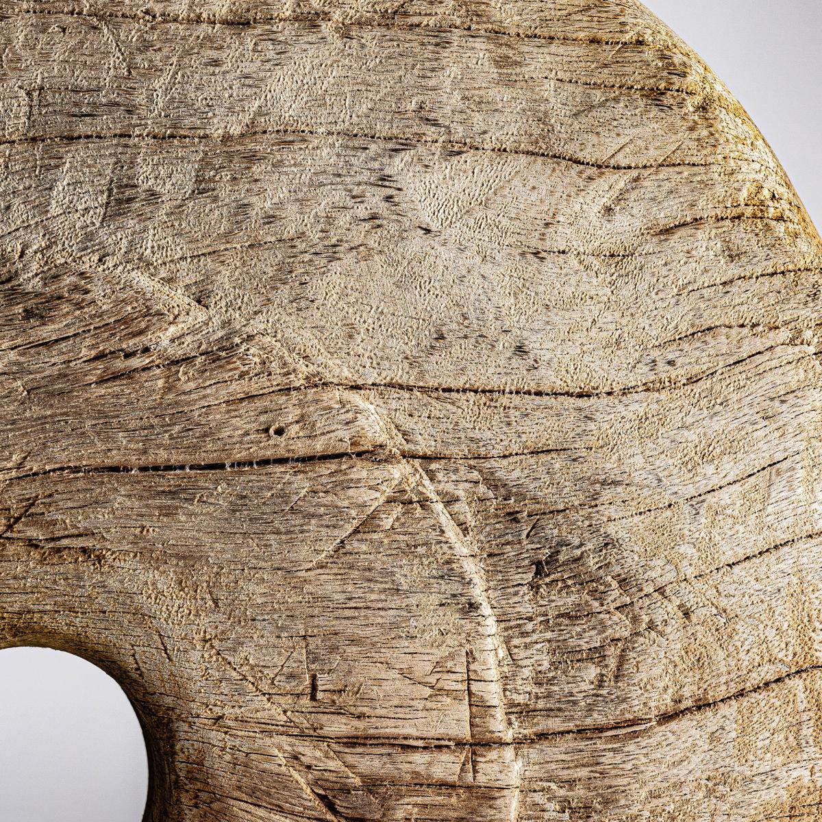 Figura decorativa de estilo étnico, fabricado en madera de pino reciclado en color marrón con acabado envejecido, combinado con hierro.