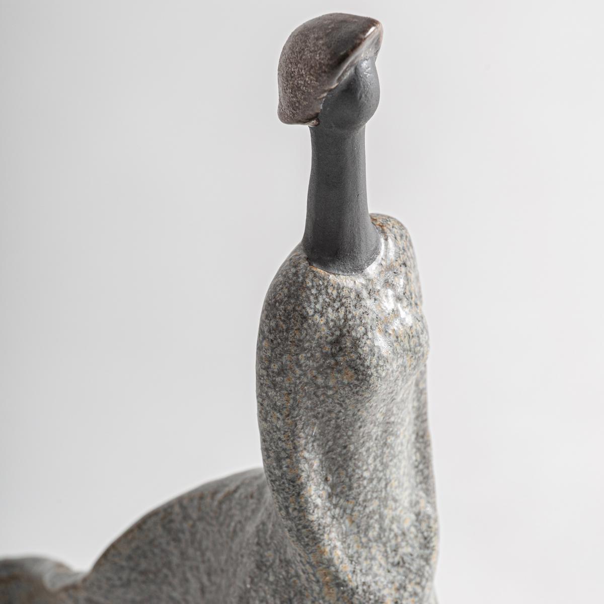 Figura decorativa Diana de estilo contemporáneo, fabricado en cerámica en color blanco roto en color plata.