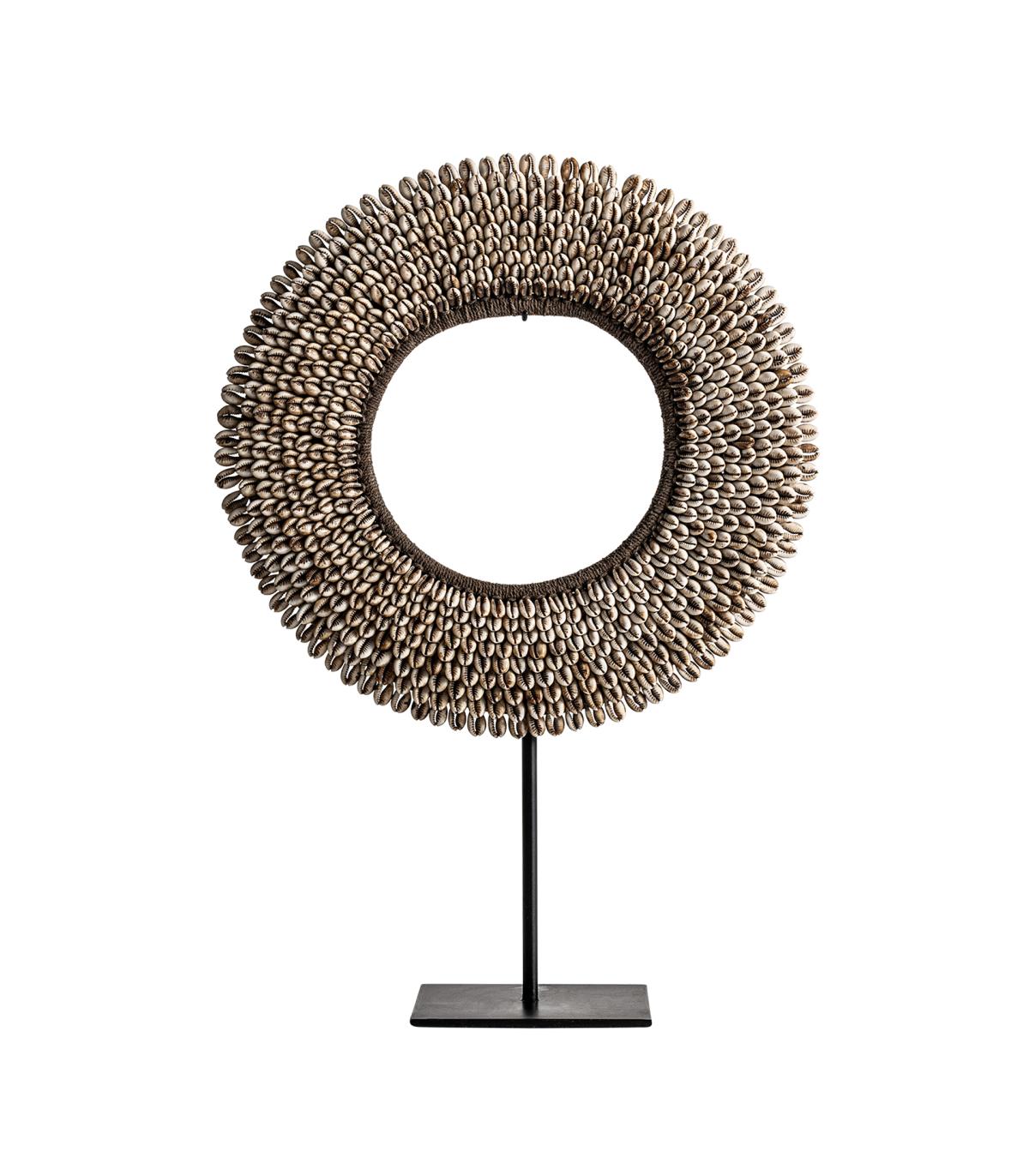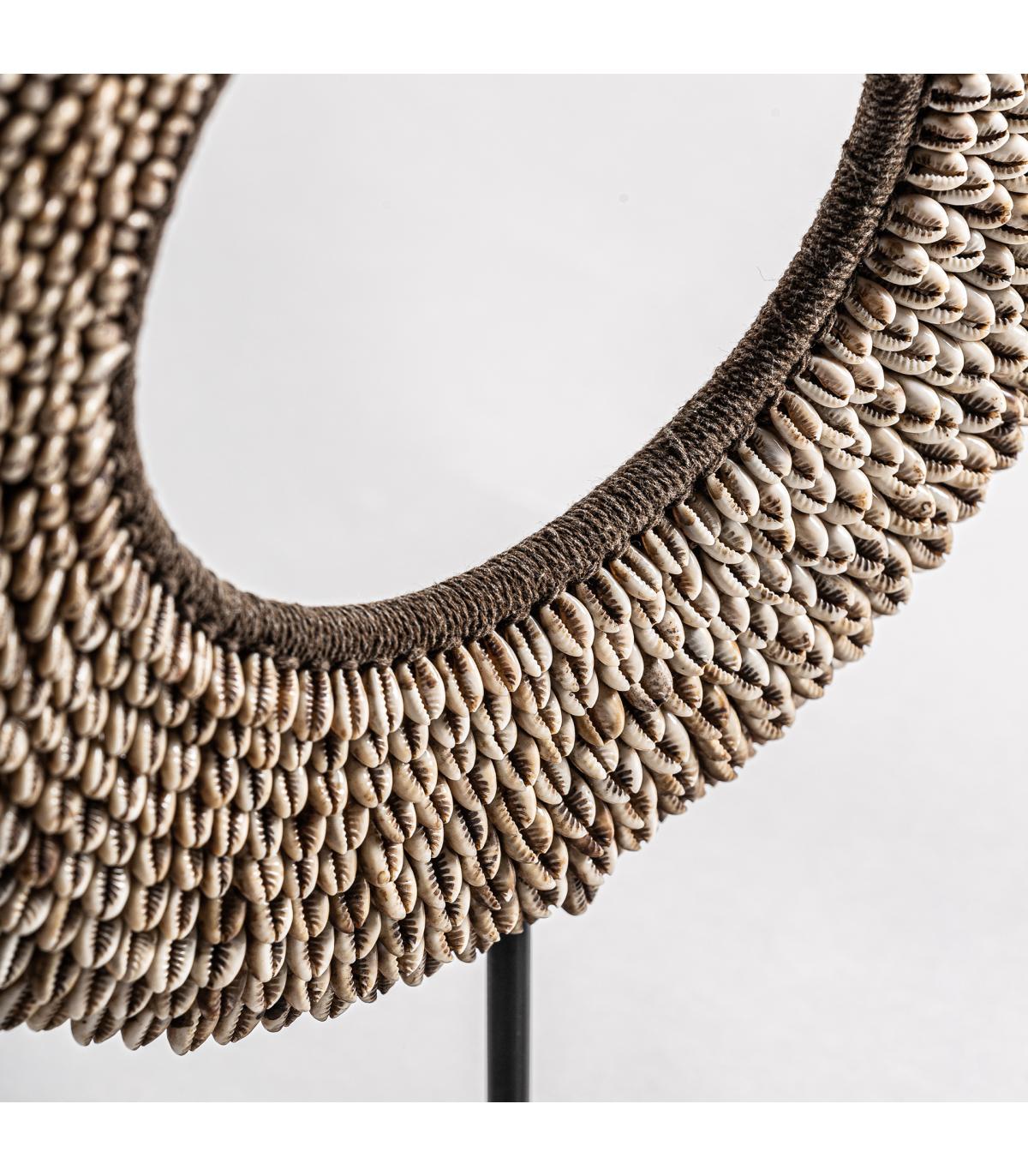 Figura decorativa janha de estilo étnico fabricado en hierro en color negro combinado con concha en color tonos en marrón. Producto desmontable.