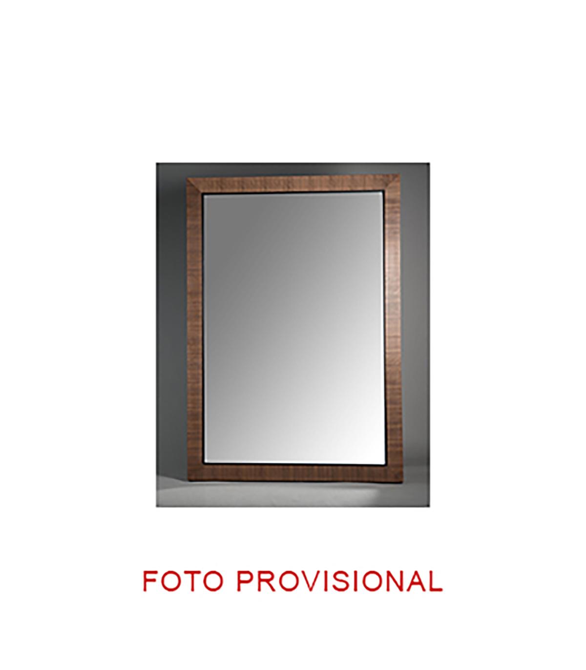Espejo fabricado en espejo combinado con madera nogal en color marrón y madera dm en color marrón.